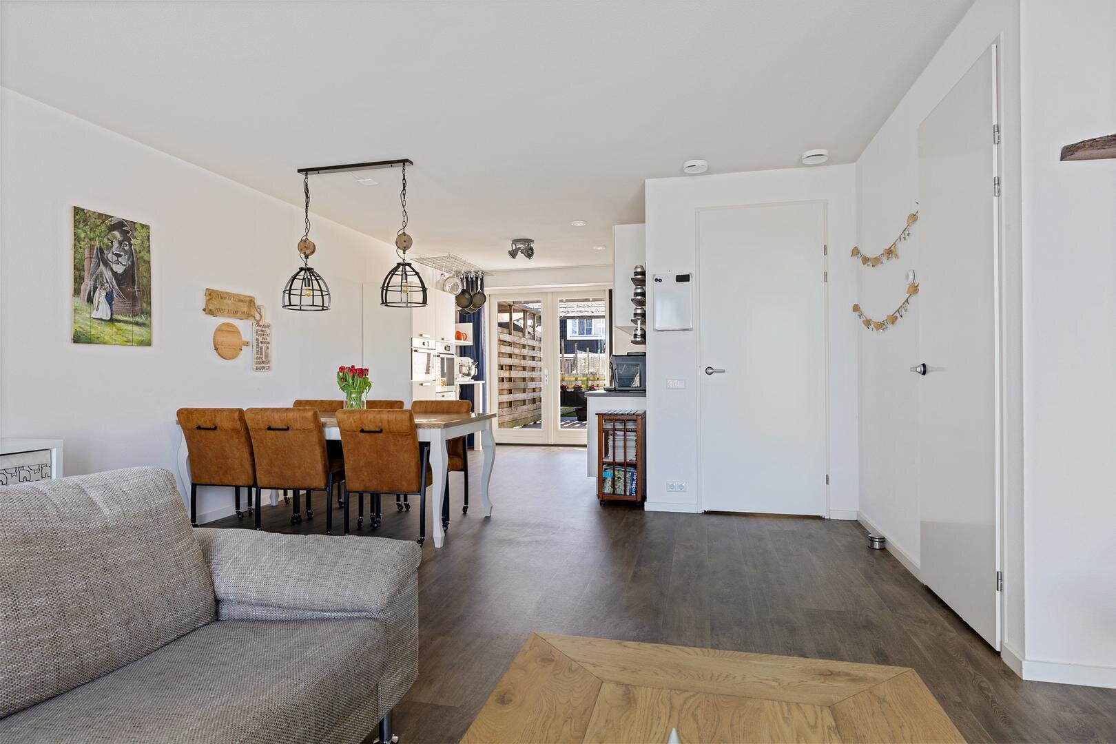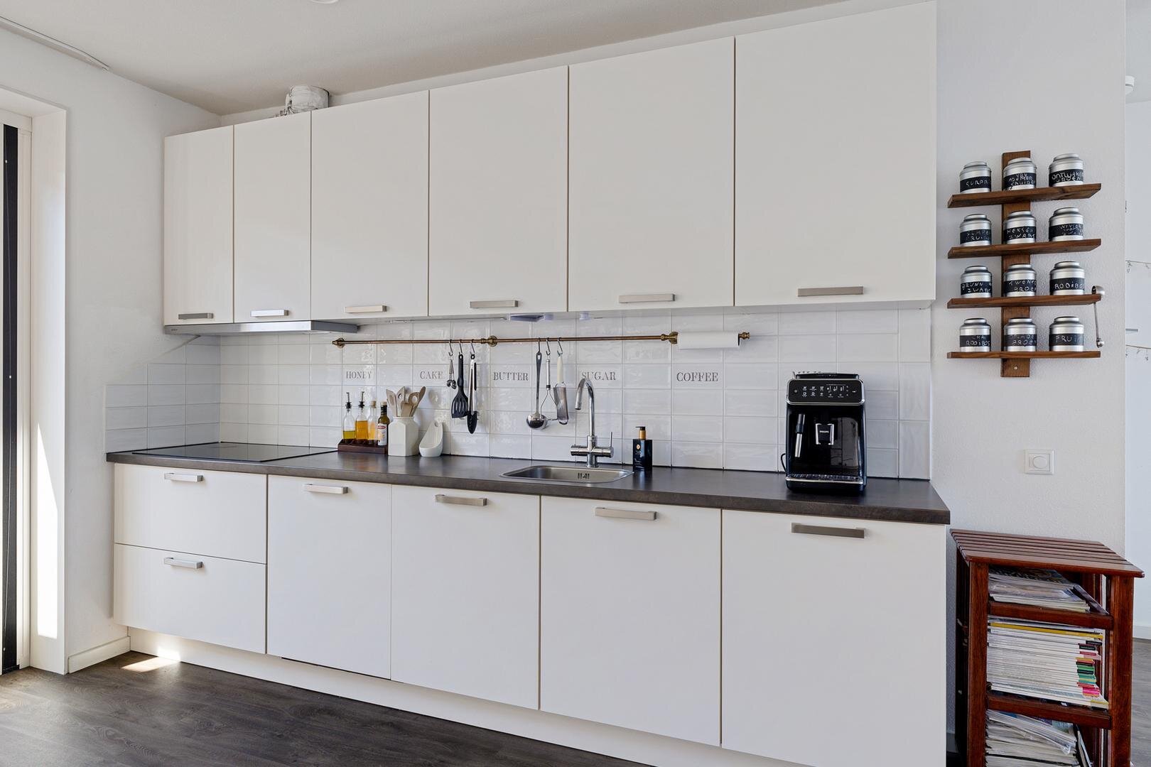 Begane grond: Via de zijentree kom je in de hal met toilet. De straatgerichte woonkamer is heerlijk licht dankzij de grote raampartijen en biedt een vrij uitzicht, wat zorgt voor een ruimtelijk gevoel. Aan de tuinzijde bevindt zich de moderne keuken met openslaande deuren naar de tuin en een nette opstelling voorzien van diverse inbouwapparatuur, waaronder een inductiekookplaat, heteluchtoven en vaatwasser.
