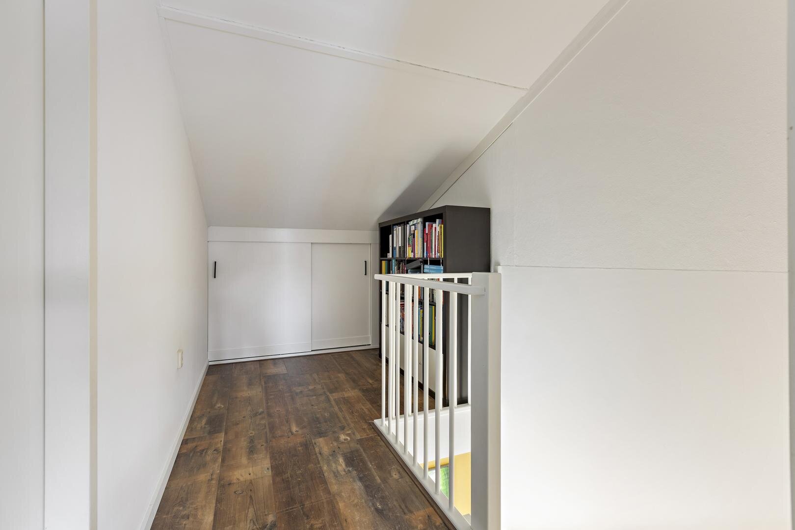 Tweede verdieping: overloop, berging met cv-opstelling en witgoedaansluiting, zeer ruime slaapkamer van ca. 17 m². Op deze verdieping is veel bergruimte achter knieschotten aanwezig.