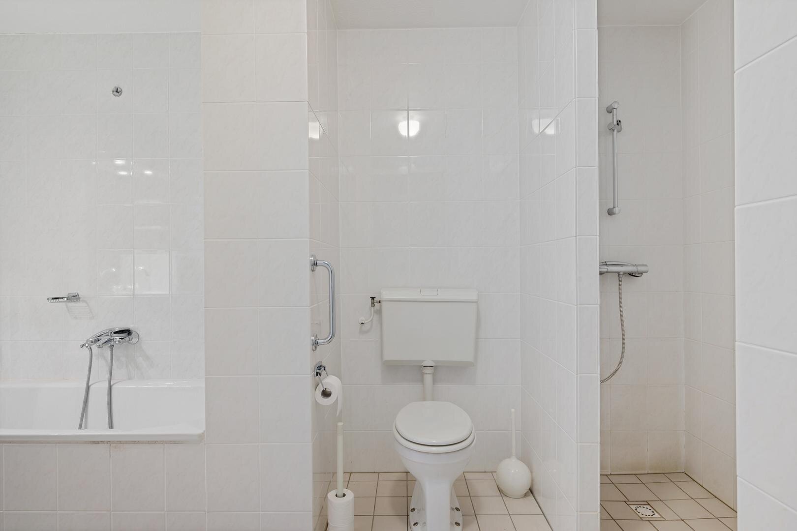 De badkamer is voorzien van een ligbad, douche en wastafel. Daarnaast is er een separaat toilet aanwezig. In de hal bevindt zich tevens een berging/technische ruimte.