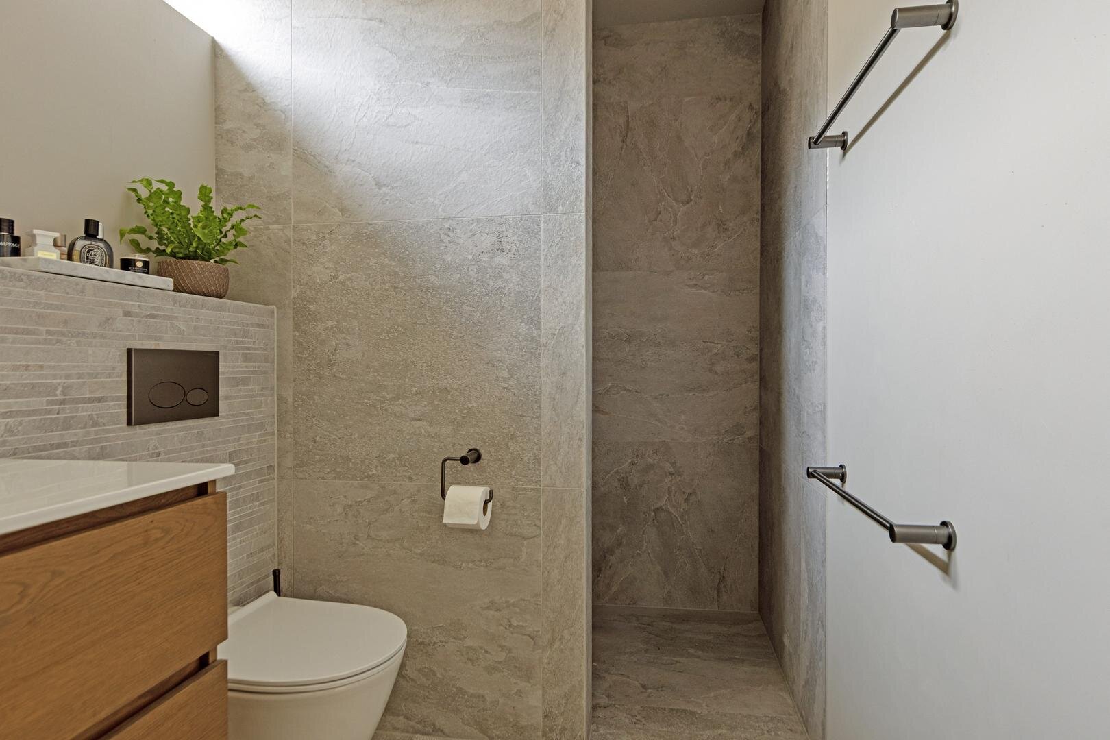 Aan de achterzijde van de woning bevinden zich de overige vertrekken. Hier vind je een slaapkamer van circa 9 m² en een tweede slaapkamer van circa 18 m². De badkamer is circa 1 jaar geleden vernieuwd, modern uitgevoerd en voorzien van een regendouche met handdouche, een wastafel, toilet en mechanische ventilatie.