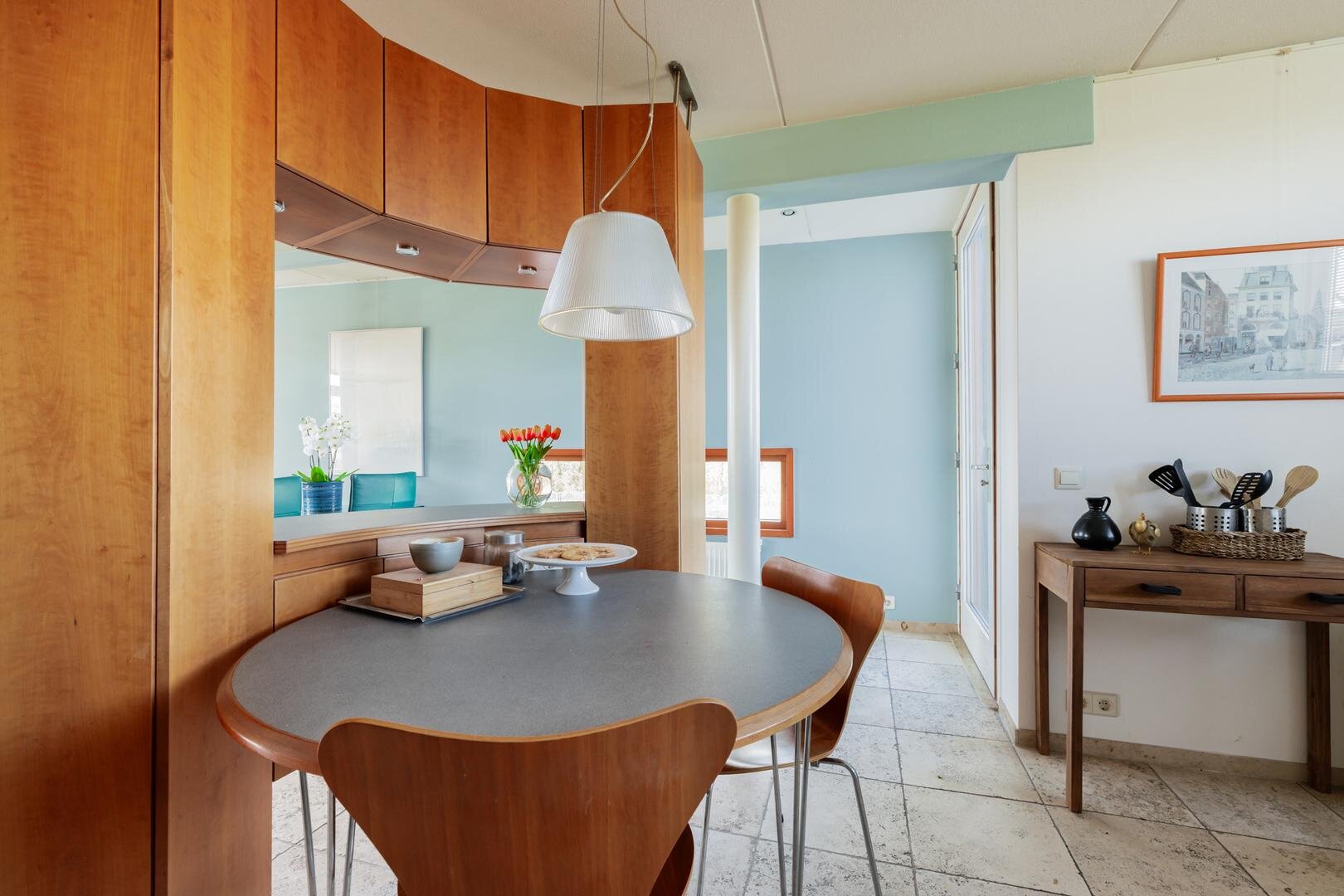 De exclusieve keuken (Boform) is uitgevoerd in maatwerk en voorzien van diverse inbouwapparatuur, waaronder een oven, stoomoven, koffiemachine en vaatwasser. Een stijlvolle en complete keuken waar koken en samenzijn vanzelf samenkomen.
