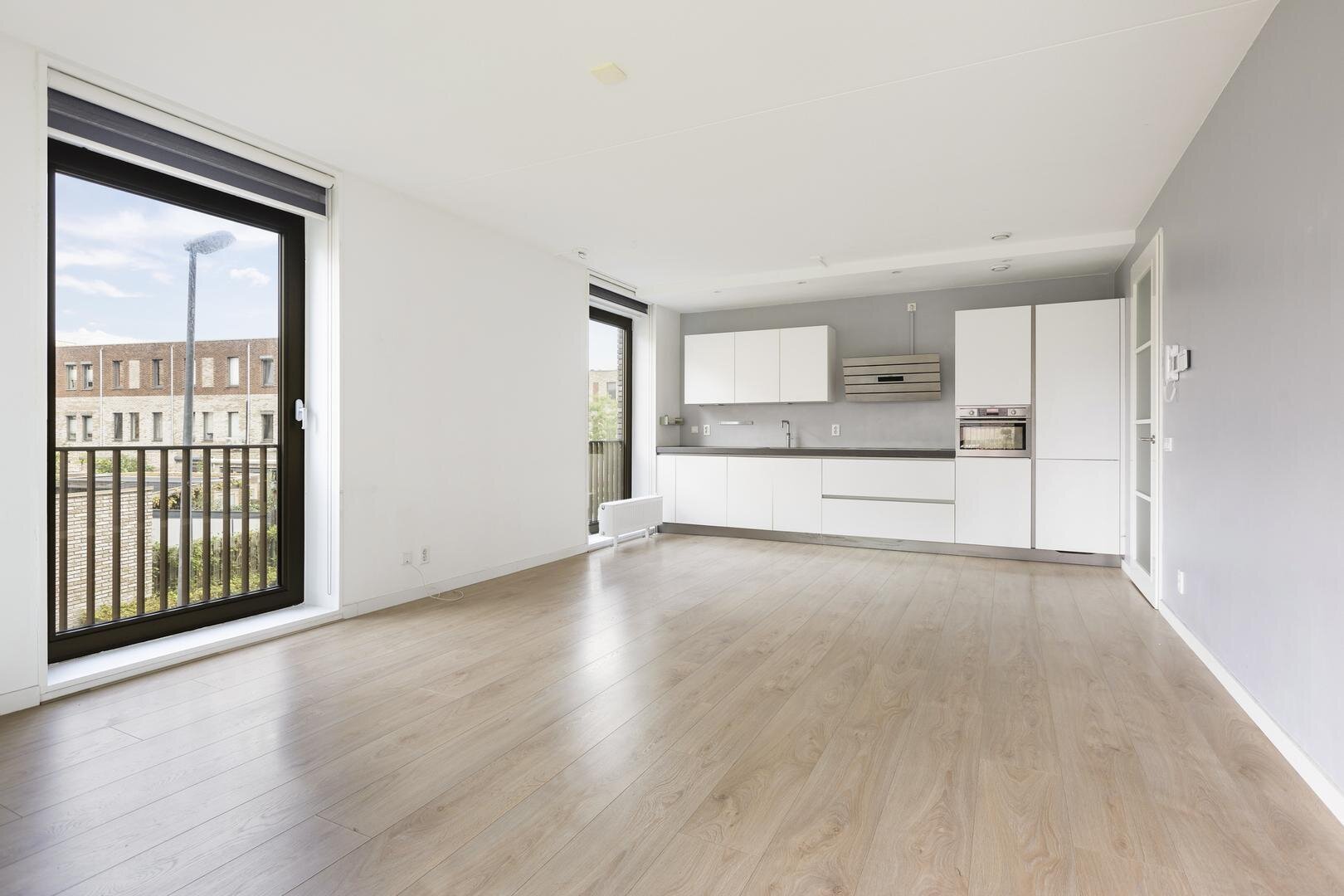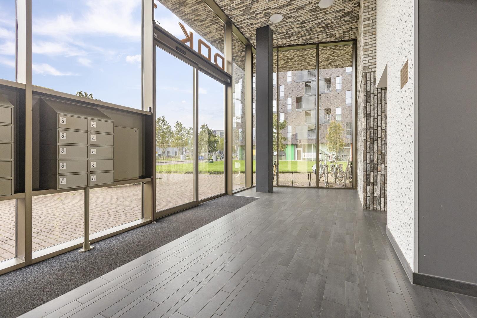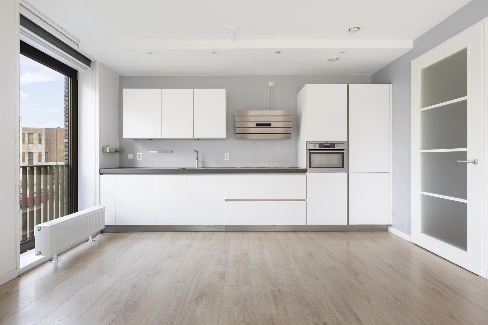 Eerste verdieping: entree appartement, bergruimte met witgoedaansluiting en cv-opstelling, toiletruimte, moderne badkamer met inloopdouche en wastafelmeubel. De badkamer is heeft tevens mooie nisjes. De lichte woonkamer van ca. 31 m² heeft een schuifpui naar het balkon en de open keuken is voorzien van een luxe uitgevoerde keukenopstelling met een 6-pits inductiekookplaat, afzuigkap, koelkast, vriezer, combi-oven, vaatwasser en Quooker. Verder beschikt het appartement over een ruime slaapkamer van ca. 16 m².