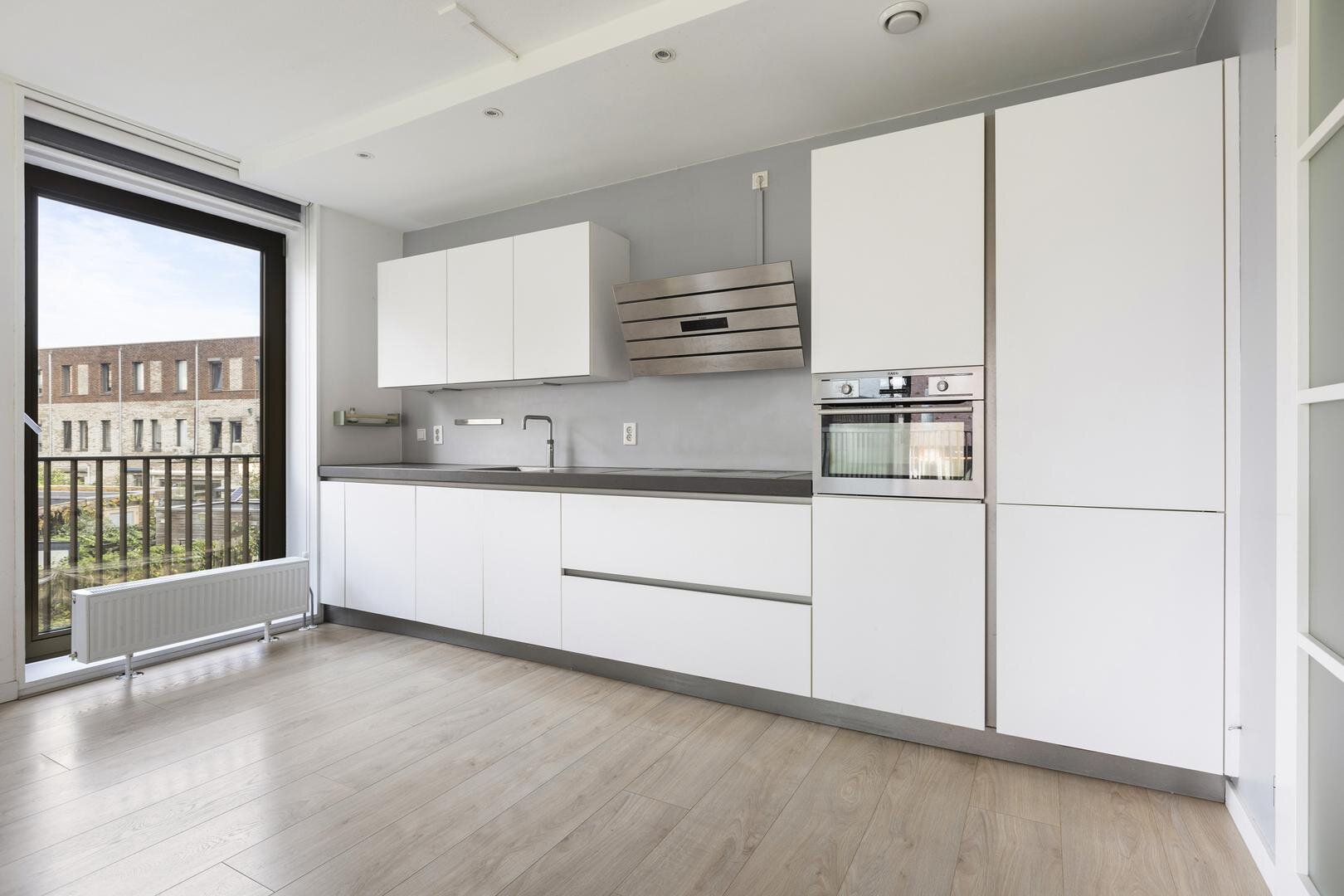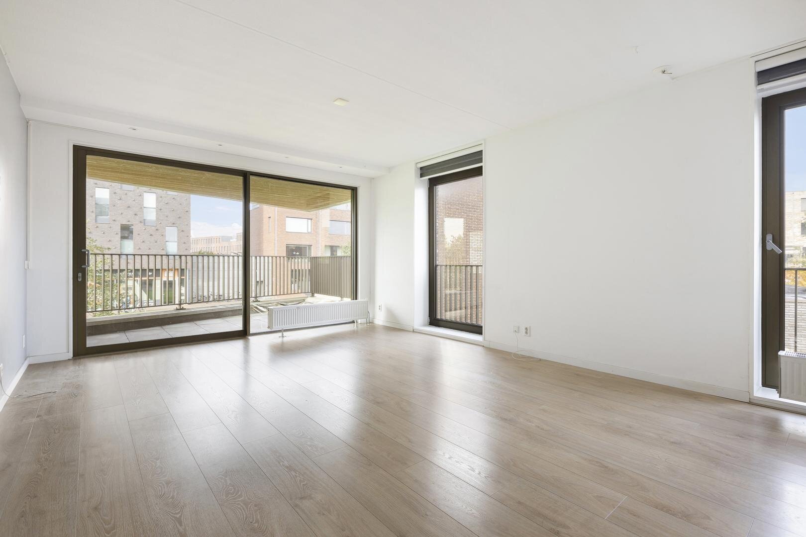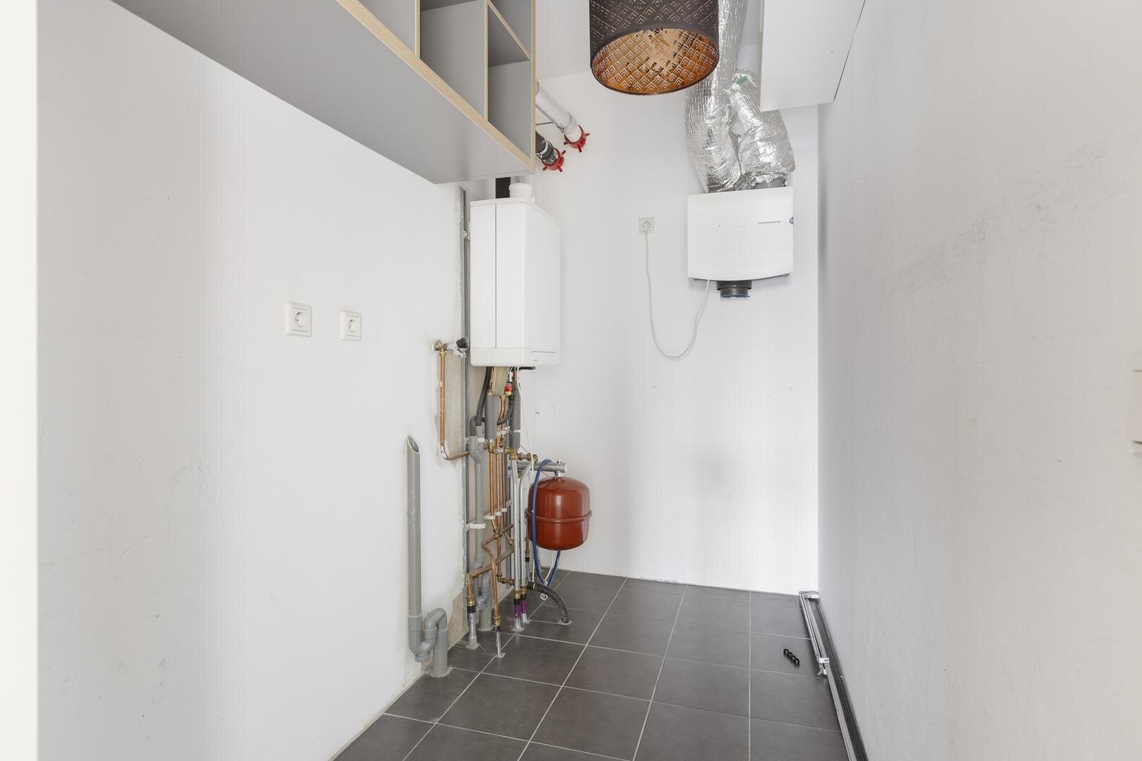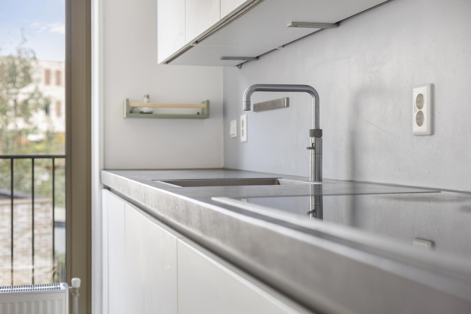 Eerste verdieping: entree appartement, bergruimte met witgoedaansluiting en cv-opstelling, toiletruimte, moderne badkamer met inloopdouche en wastafelmeubel. De badkamer is heeft tevens mooie nisjes. De lichte woonkamer van ca. 31 m² heeft een schuifpui naar het balkon en de open keuken is voorzien van een luxe uitgevoerde keukenopstelling met een 6-pits inductiekookplaat, afzuigkap, koelkast, vriezer, combi-oven, vaatwasser en Quooker. Verder beschikt het appartement over een ruime slaapkamer van ca. 16 m².