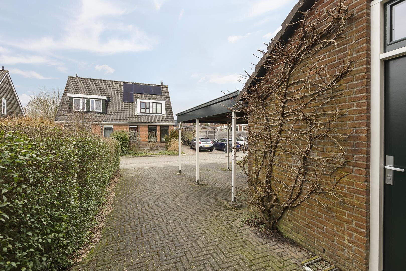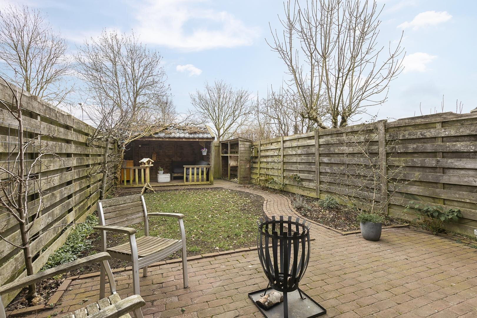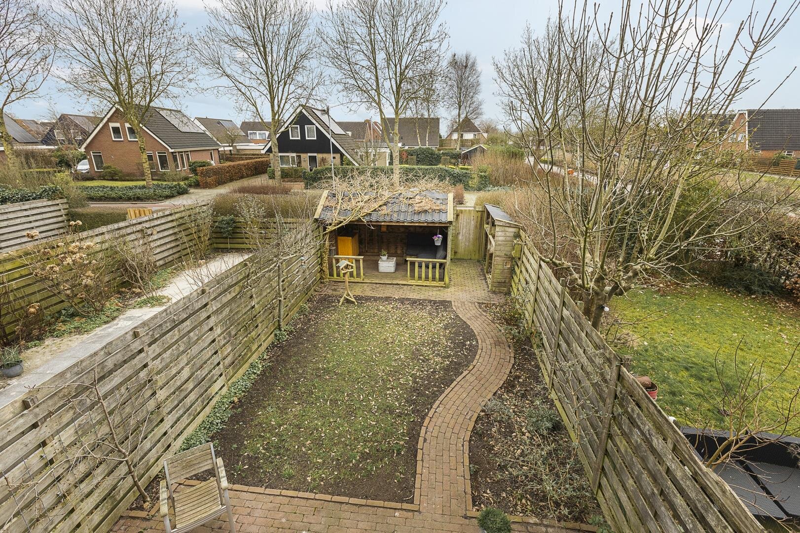 De nette achtertuin heeft een goede combinatie tussen groen en terras. De ligging is op het zuiden en dankzij de vrije ligging heb je hier veel privacy. Hier kun je optimaal genieten van het buitenleven, met de mogelijkheid om veel uren van de dag in de zon te zitten. Achterin de tuin staat een vrijstaande houten overkapping. Hierdoor heb je de mogelijkheid om in de schaduw te zitten. De voortuin is voorzien van een ruime oprit met carport en plek voor drie auto's.