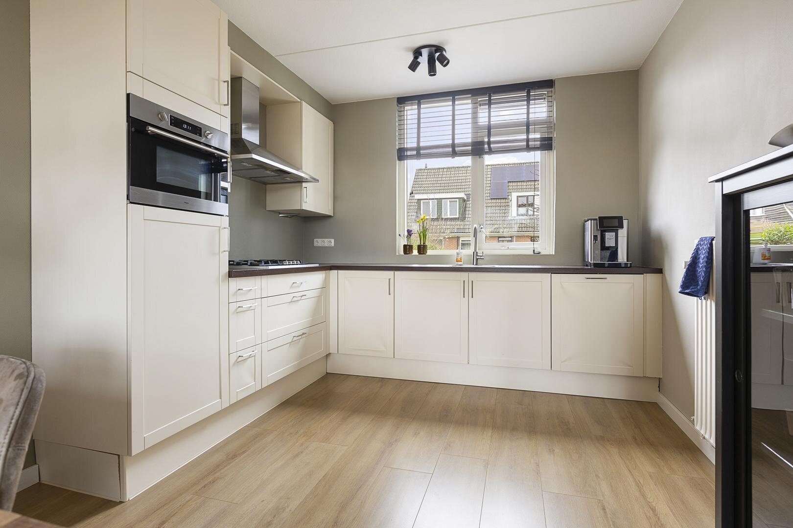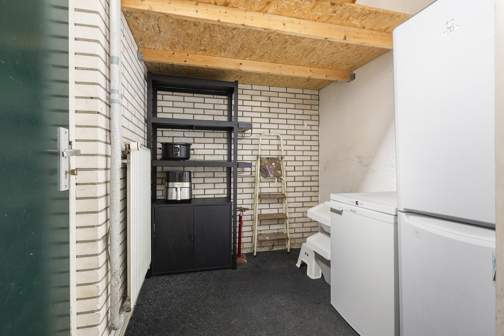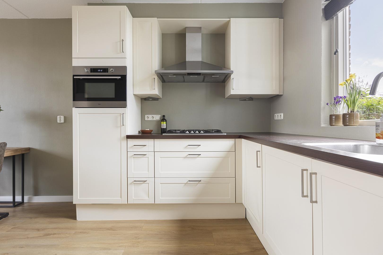 Begane grond: entree/hal met toegang tot de berging/bijkeuken met witgoedaansluiting en eveneens een deur naar de oprit, moderne toiletruimte, lichte woonkamer van ca. 24 m² met deur naar de achtertuin. De open keuken van ca. 12 m² heeft een keukenopstelling met 4-pits gaskookplaat, afzuigkap, koelkast, combimagnetron en vaatwasser.
