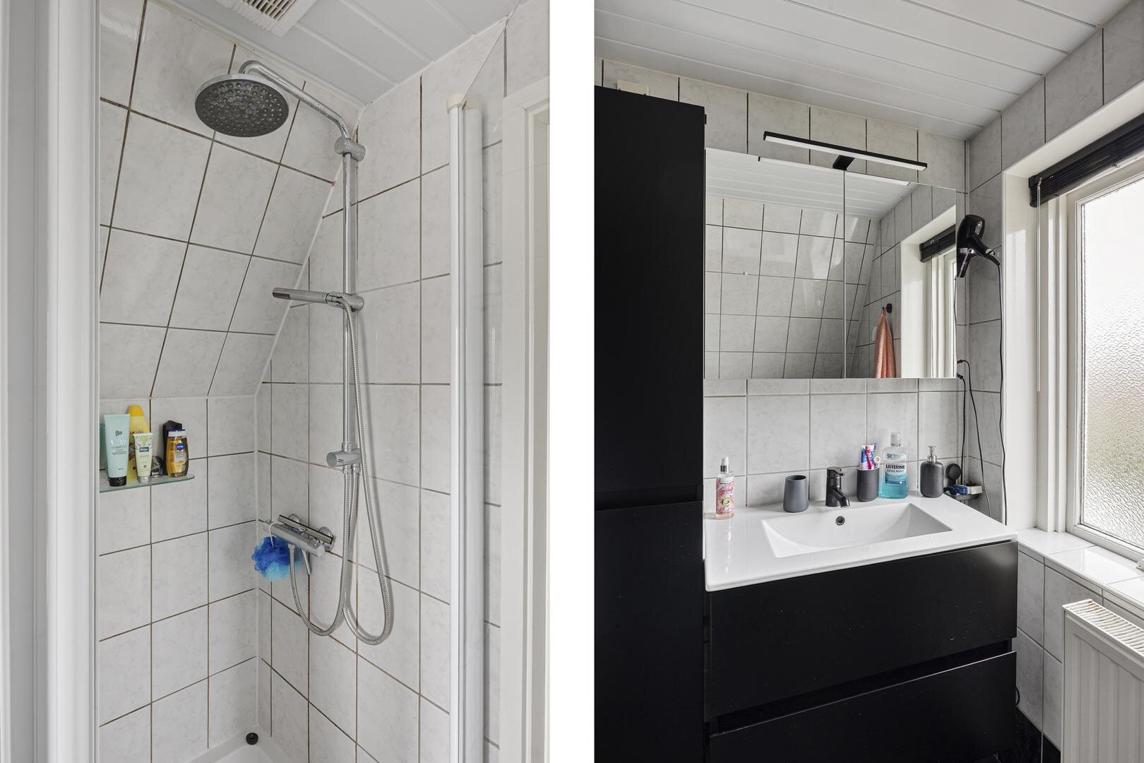 Eerste verdieping: Op de verdieping bevinden zich vier slaapkamers van circa 5, 7, 9 en 10 m². Daarnaast is er een tweede badkamer aanwezig met douche, wastafel en toilet. Dankzij de vaste kasten is er bovendien voldoende bergruimte.