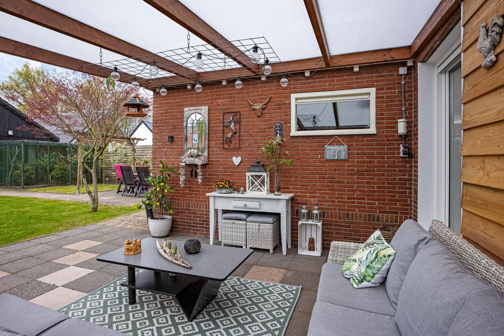 Buiten: De tuin rondom de woning is verzorgd aangelegd en biedt meerdere plekken om te zitten en te genieten van de rust en privacy. De hoekligging zorgt voor een extra ruimtelijk gevoel en veel vrijheid.