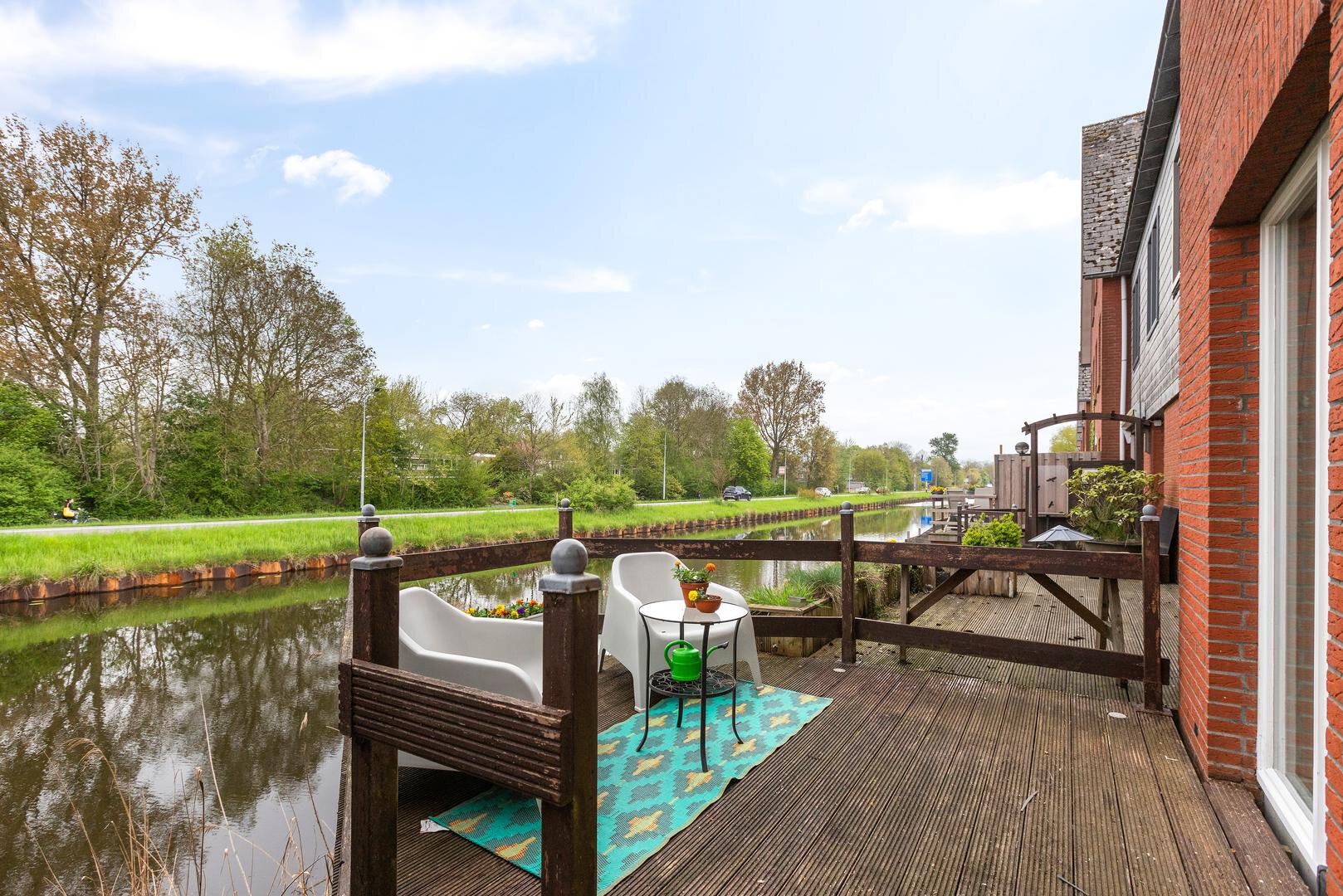 De achtertuin grenst aan het water en hier heb je in de zomer de avondzon; heerlijk om na een lange dag nog aan het water te zitten met een drankje. Vanaf hier is het mogelijk om te suppen of met een bootje op pad te gaan. De voortuin biedt de ochtend- en middagzon. Hier bevindt zich ook de vrijstaande berging van ca. 8 m² en een eigen parkeerplek.