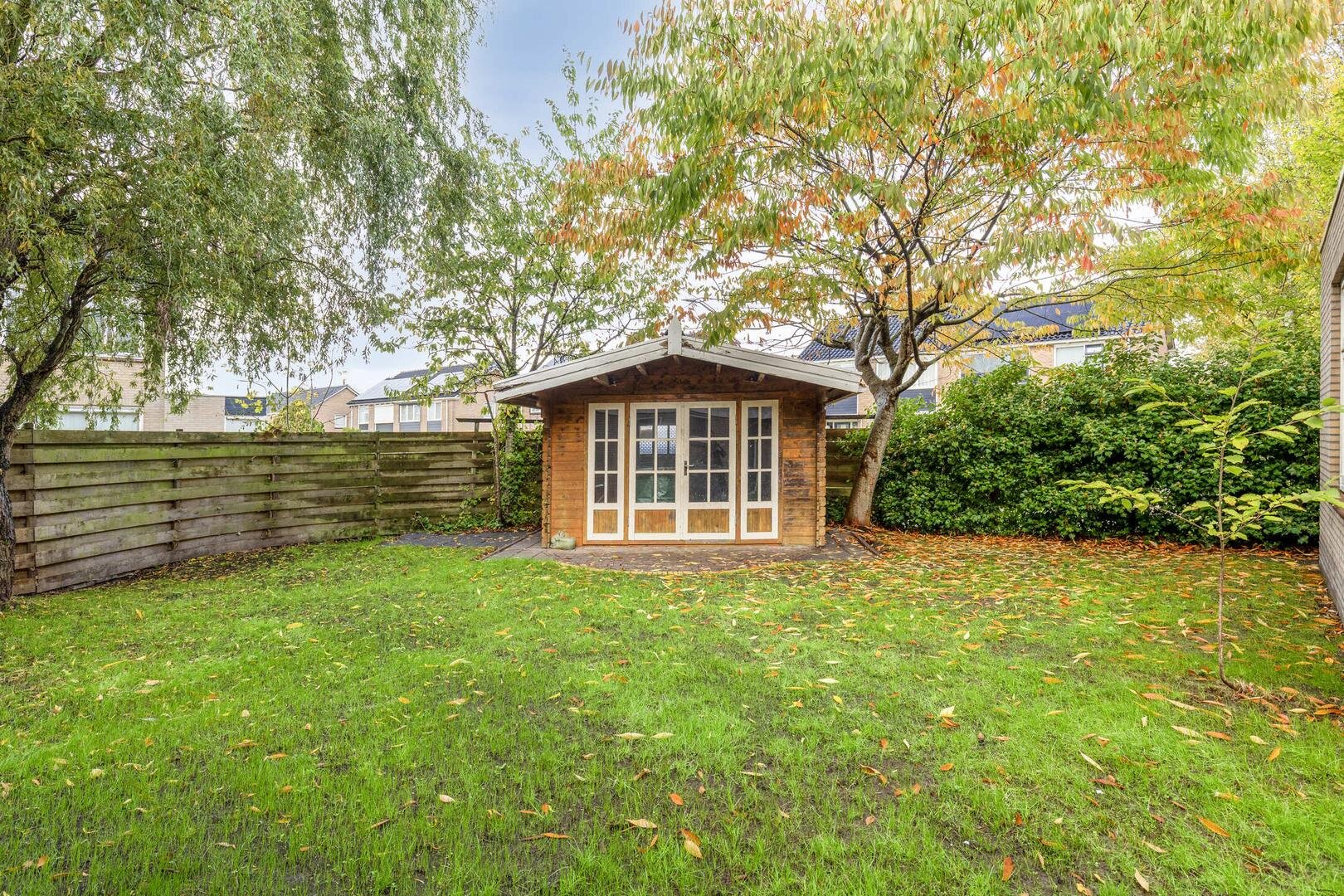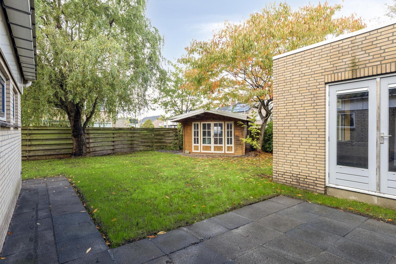 Dankzij het perceel van 457 m² heeft deze woning een riante achtertuin. De tuin is is groen aangelegd en beschut, waardoor je in alle privacy kunt genieten in de tuin; zowel in de zon als schaduw. Daarnaast is er een ruim tuinhuis aanwezig, ideaal voor opslag of het creëren van een extra zitplek.