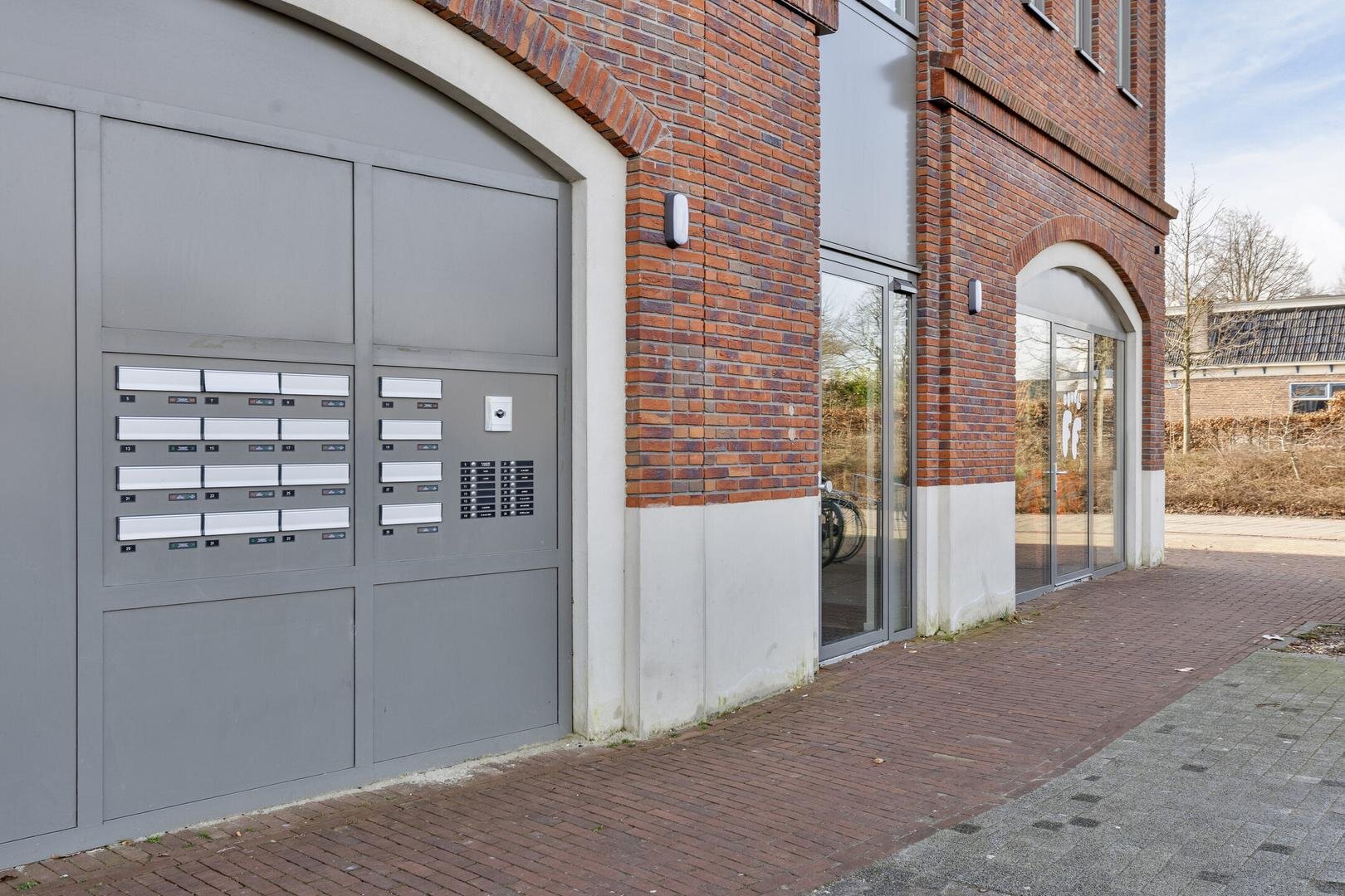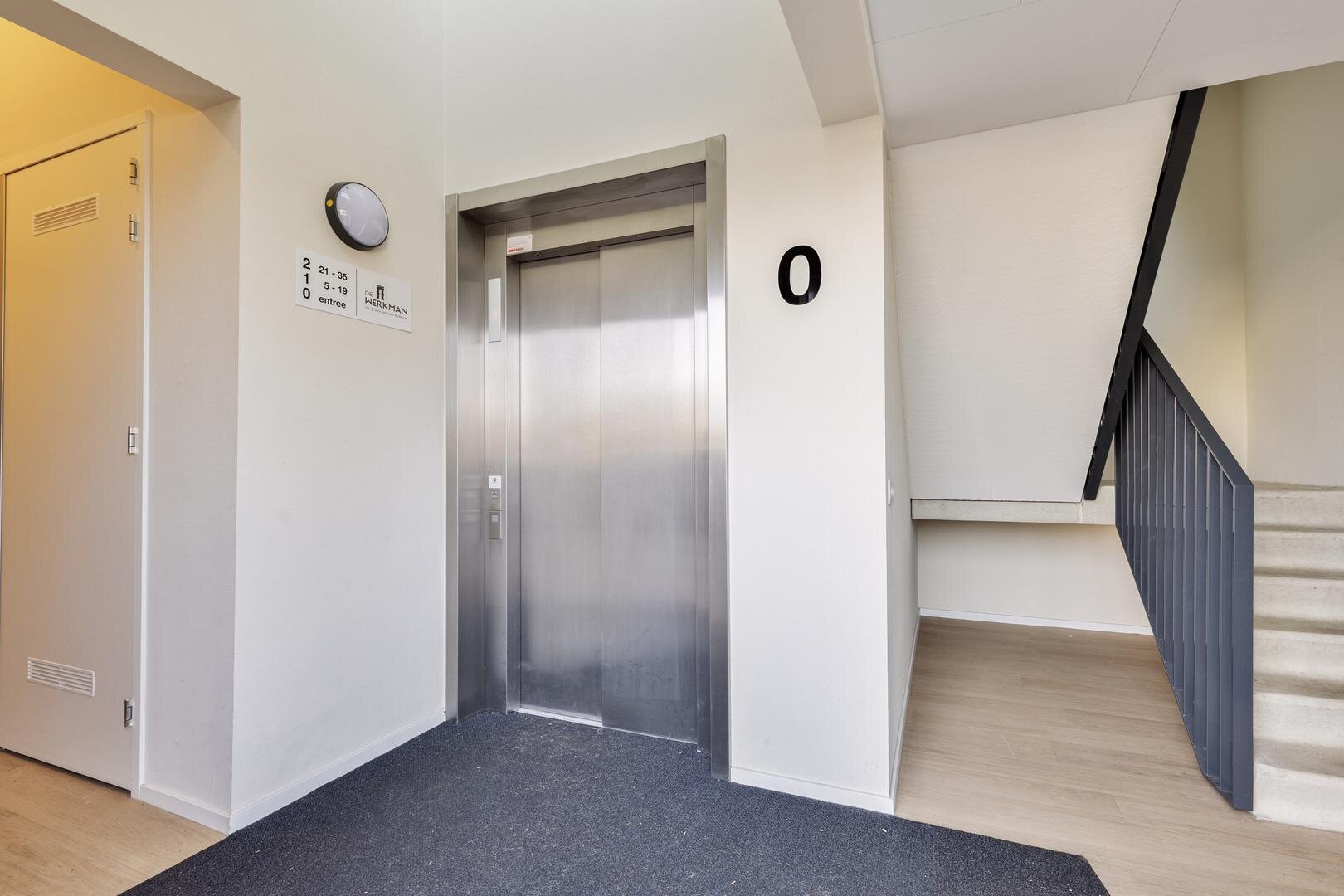 Begane grond: entree complex met trapopgang, lift en gezamenlijke fietsenberging.
