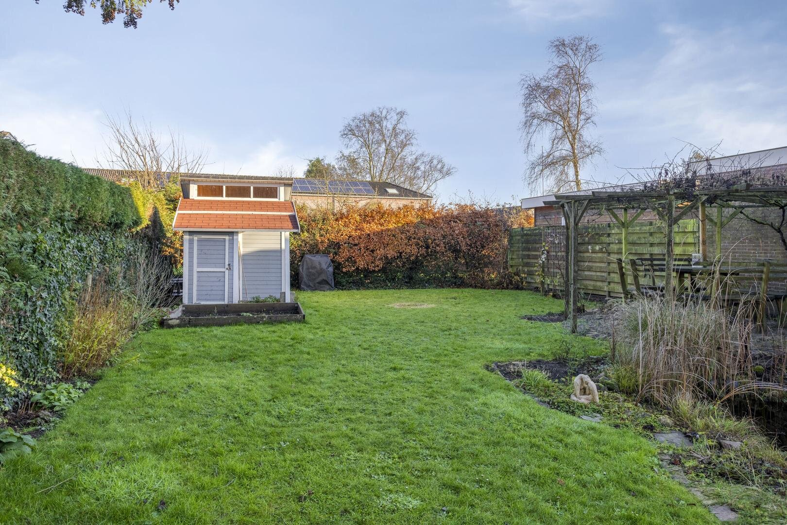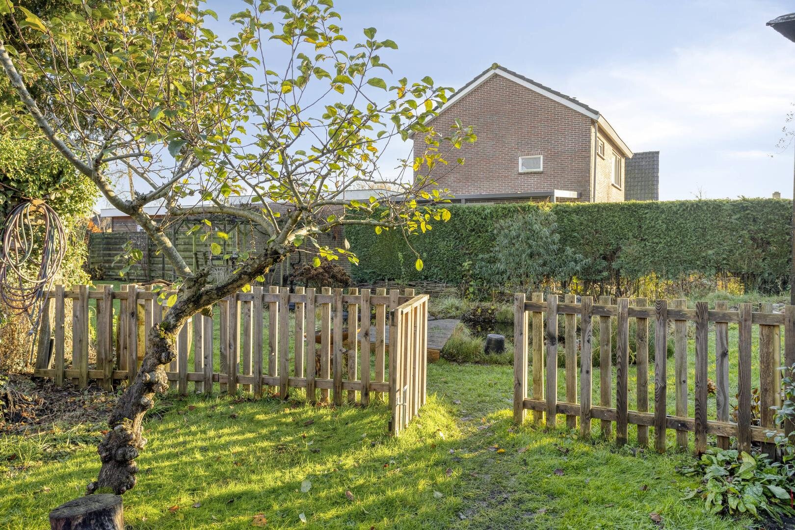 De achtertuin ligt volledig op het zuiden, biedt veel privacy en vormt een heerlijke plek voor wie graag buiten leeft. Op het perceel staan meerdere bijgebouwen, waaronder een zonnehuisje en twee bergingen — ideaal voor hobby, opslag of extra werkruimte.