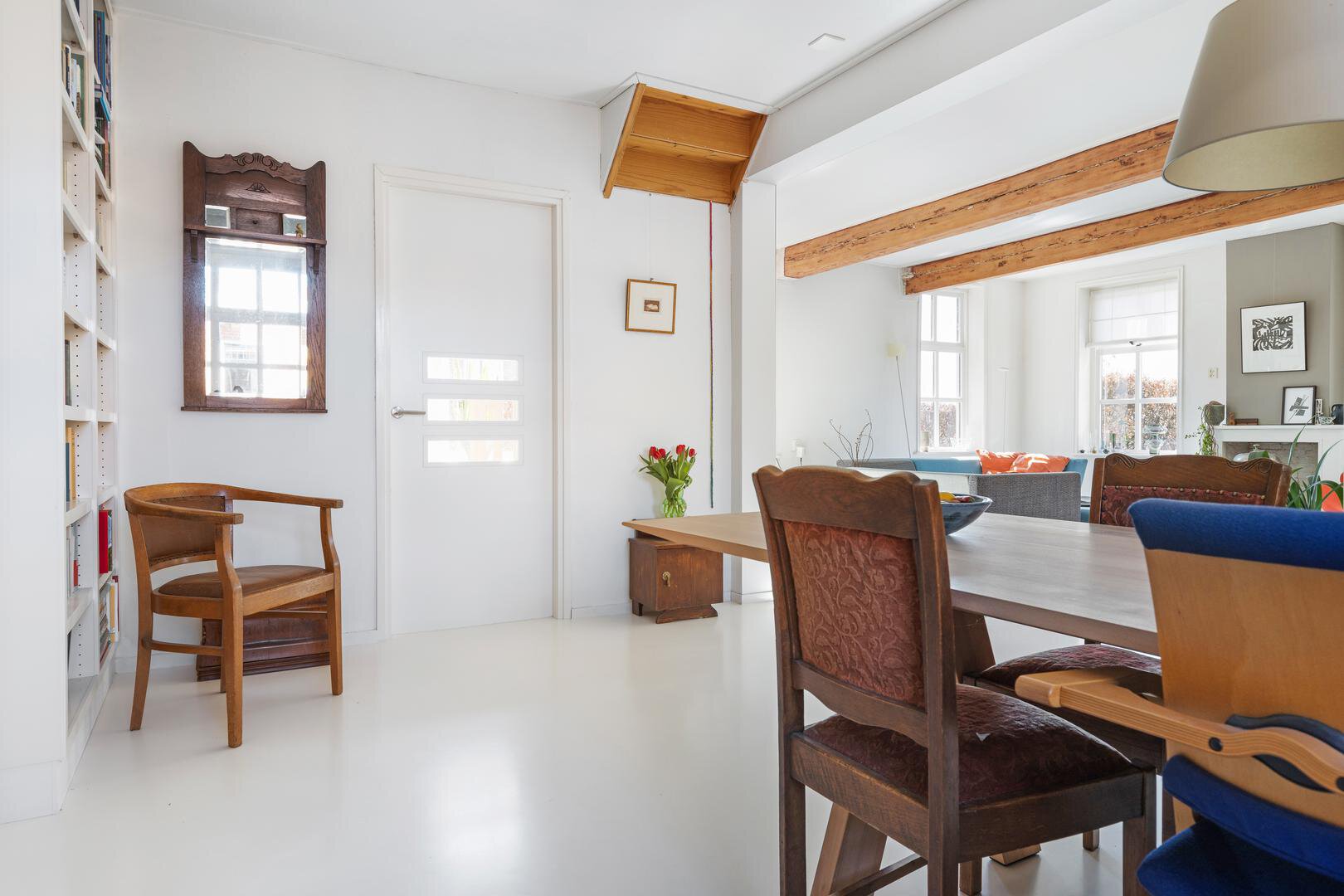 Begane grond: entree rechterkant, hal, moderne toiletruimte, berging met witgoedaansluiting en toegang tot de ruime en heerlijk lichte woonkamer van maar liefst ca. 44 m². Verschillende ramen bieden zicht op de groene tuin. De open woonkeuken van ca. 28 m² is aangebouwd in 2007 en heeft een ruime kelderkast. De luxe keukenopstelling is van Poggenpohl en heeft een kookeiland voorzien van inductiekookplaat en afzuigkap, een separaat keukenblok met koelkast, oven, stoomoven en vaatwasser. Vanuit hier loop je via de openslaande deuren zo de fraaie tuin in. Zowel de woonkamer als woonkeuken hebben een gietvloer met vloerverwarming en hebben aan de achterzijde prachtige uitzichten over de landerijen. De entree aan de linkerkant biedt toegang tot de hal met trapopgang en de werk-/studeerkamer van ca. 11 m². Deze ruimte is ook als slaapkamer in te richten. Eerste verdieping: overloop met ruimte voor de cv-opstelling, drie slaapkamers van ca. 19, 10 en 8 m², en toegang tot twee bergzolders. De nette badkamer van ca. 6 m² heeft een ligbad, douche, wastafel en designtoilet. De badkamer heeft elektrische vloerverwarming.
