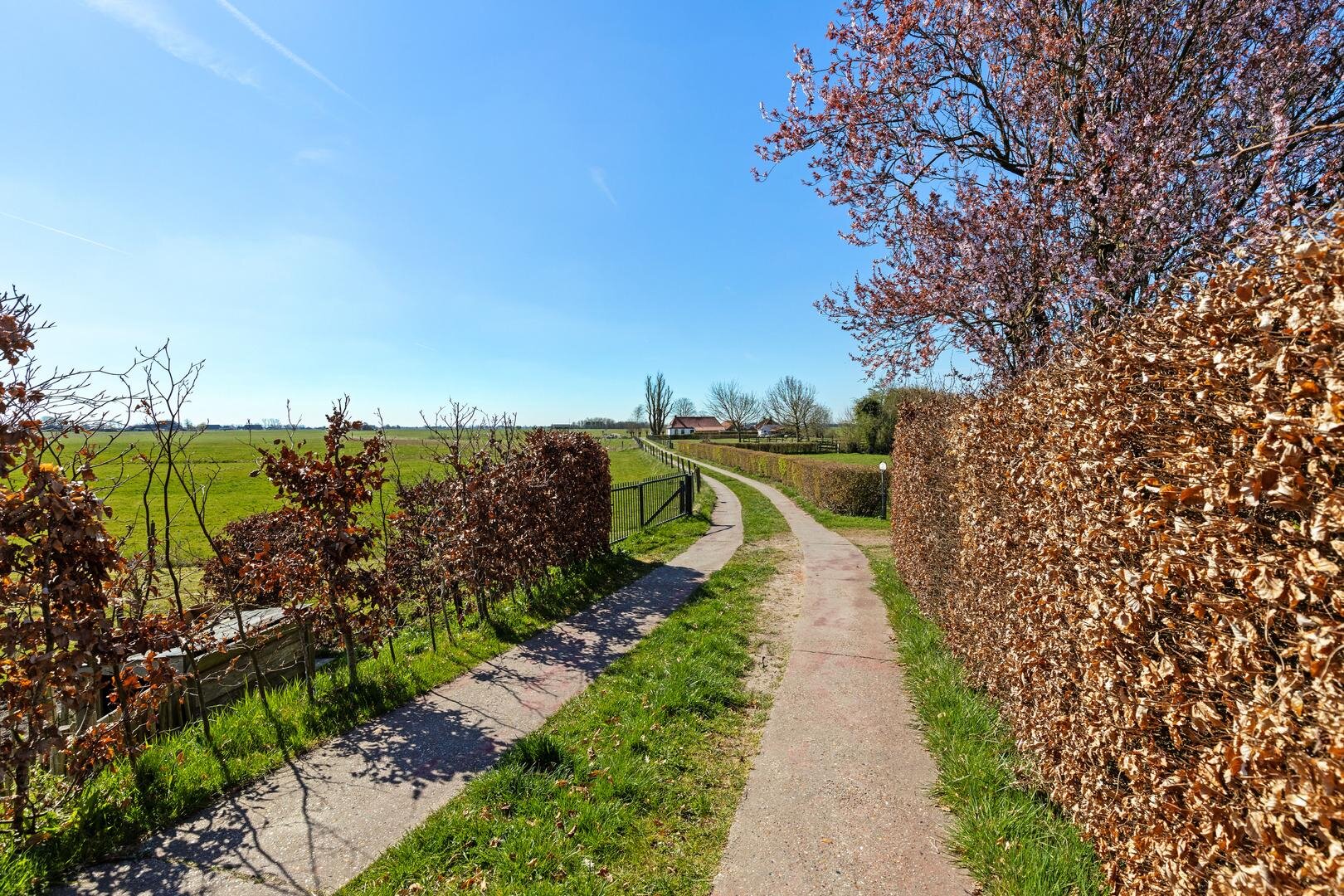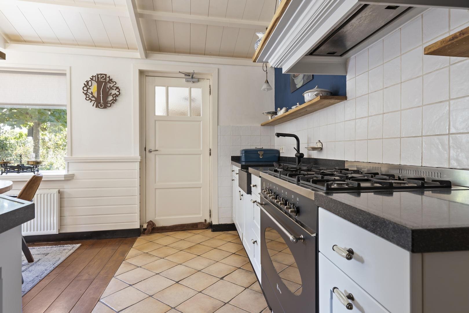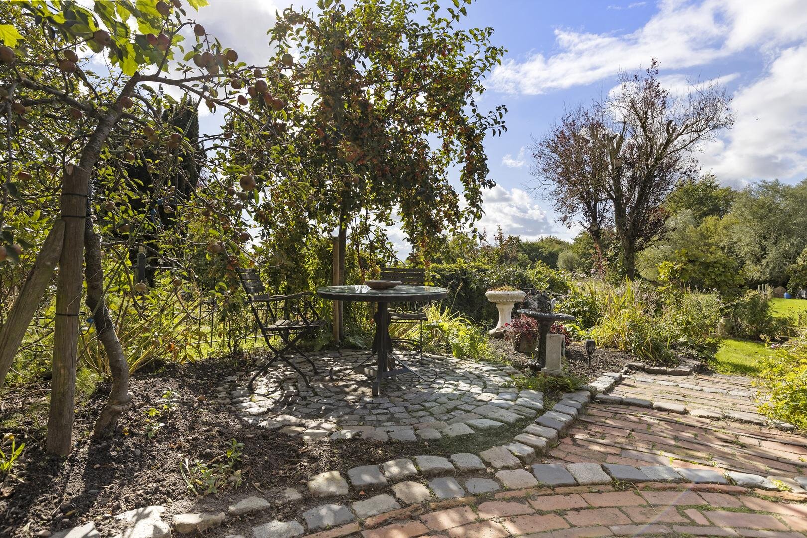 De achtertuin is werkelijk schitterend! Het grote terras is deels overdekt door de luxe tuinkamer en verder is de tuin mooi groen. De ligging op het zuidwesten biedt de gehele dag de zon en er is vrij uitzicht over de weilanden. Je kunt hier dan ook in alle privacy buiten zitten.