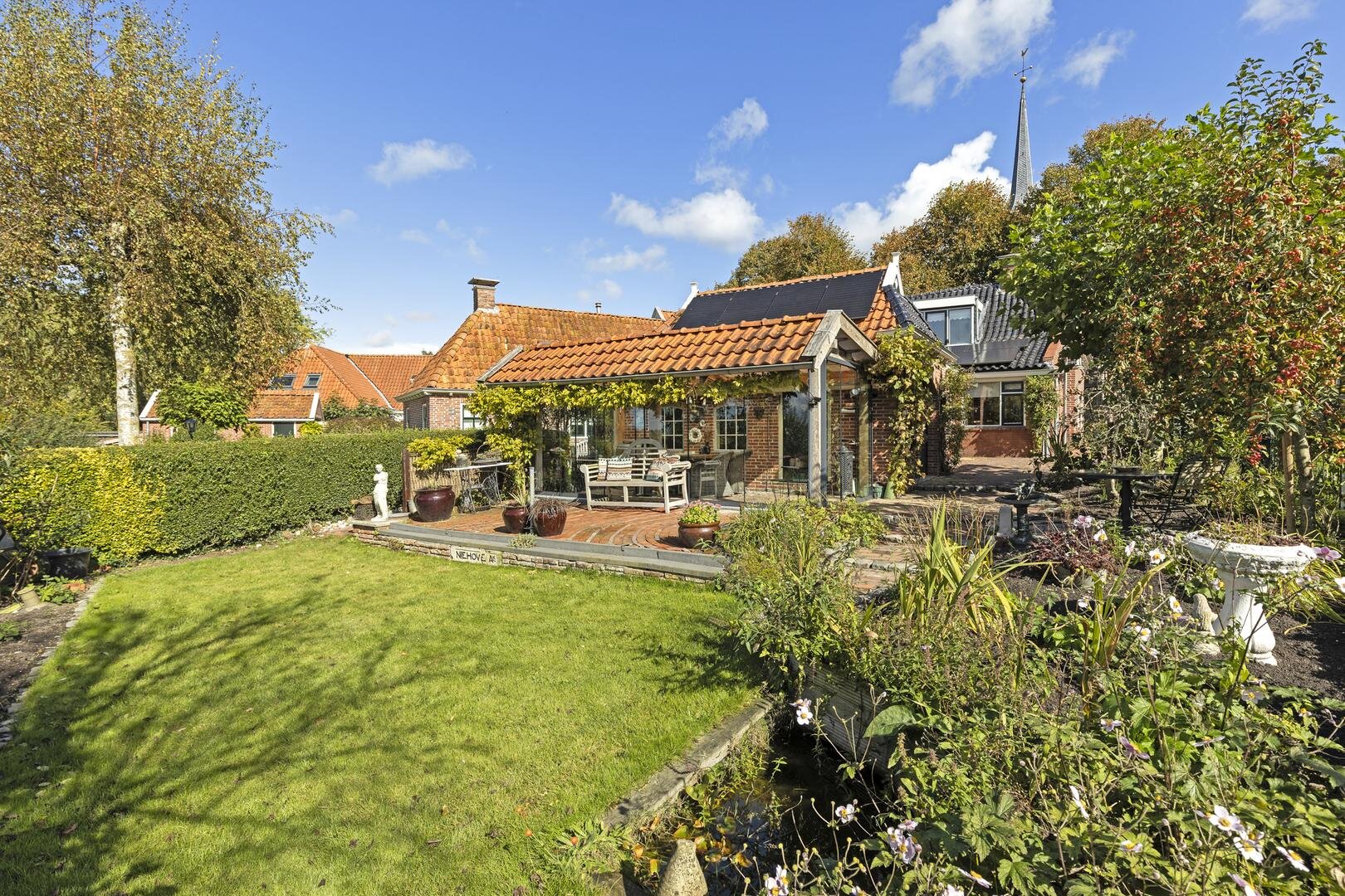 Vrijstaand wonen in het mooiste dorp van Nederland; Niehove! Deze charmante en zeer nette woning beschikt over vier slaapkamers, een ruime garage en een geweldige zonnige tuin op het zuidwesten met vrij uitzicht over landerijen. De tuin heeft een perfecte balans tussen terras en groen. Aan de achterzijde van de garage is een mooie tuinkamer gerealiseerd, waardoor je elk moment van het prachtige uitzicht kunt genieten. De woning is zeer netjes onderhouden en biedt de mogelijkheid om er zo in te trekken. Dankzij een slaapkamer en badkamer op de begane grond kun je hier levensloopbestendig wonen. Onder andere de houten vloeren en plafondbalken geven de woning sfeer. Het is hier heerlijk thuiskomen!