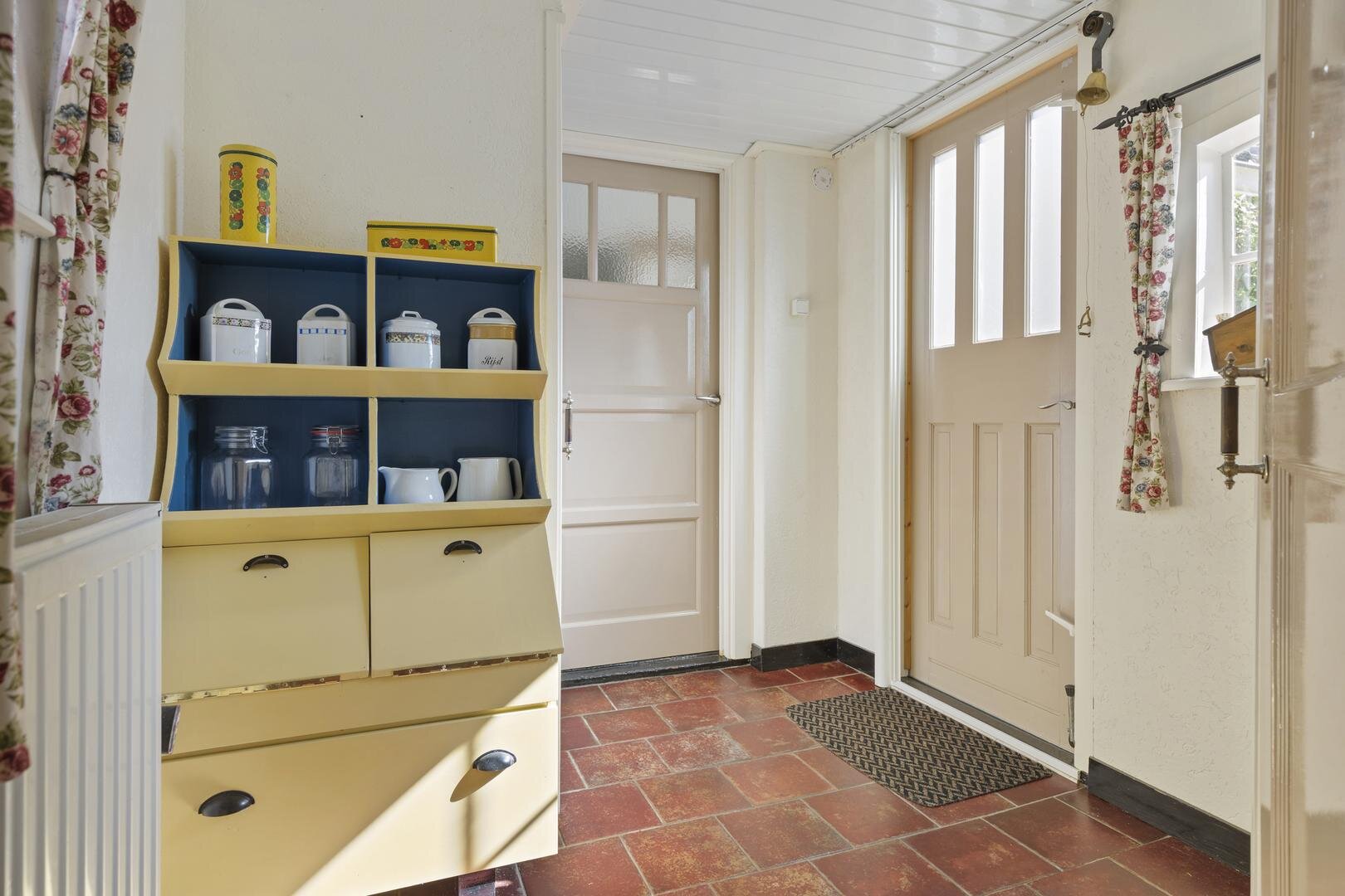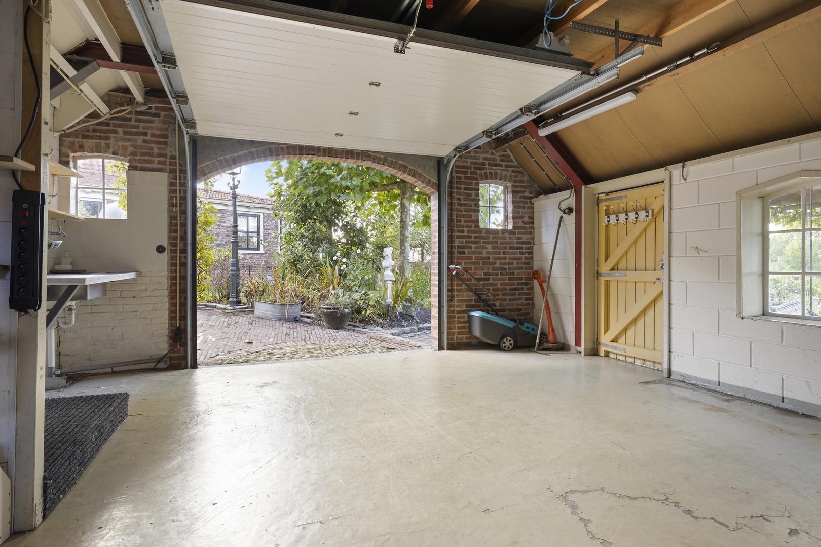 Begane grond: entree/hal, twee slaapkamers van 10 en 5 m², gemoderniseerde badkamer met een inloopdouche, wastafel en toilet. De lichte woonkamer van ca. 29 m² heeft een mooie houten vloer en de open keuken van ca. 8 m² heeft een leuke landelijke keukenopstelling met o.a. een 6-pits gasfornuis, afzuigkap, koelkast en vaatwasser. De bijkeuken heeft een vaste kast, witgoedaansluiting en deur naar de oprit. Vanuit de bijkeuken loop je de ruime garage in van ca. 29 m² met bergzolder. De garage heeft een deur naar de geweldige tuinkamer, waar je beschut en droog kunt zitten met zicht op de tuin.