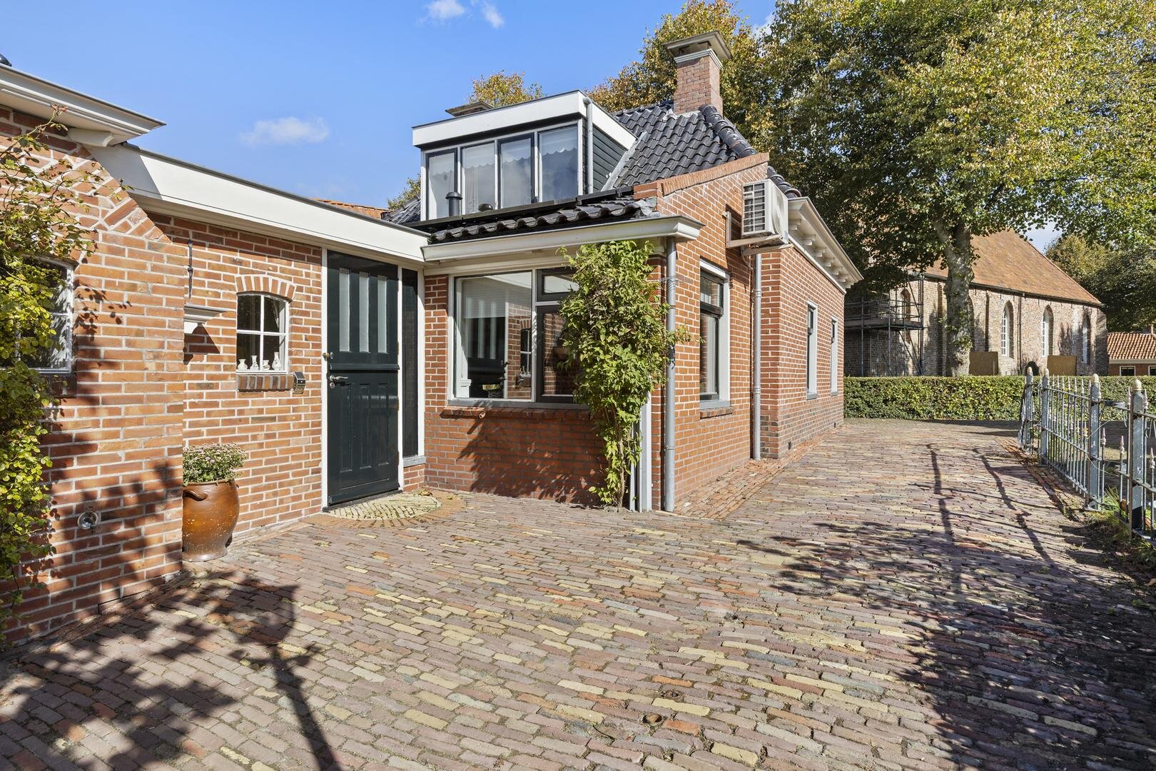 Aan de zijkant van het huis is een oprit aanwezig voor meerdere auto's.