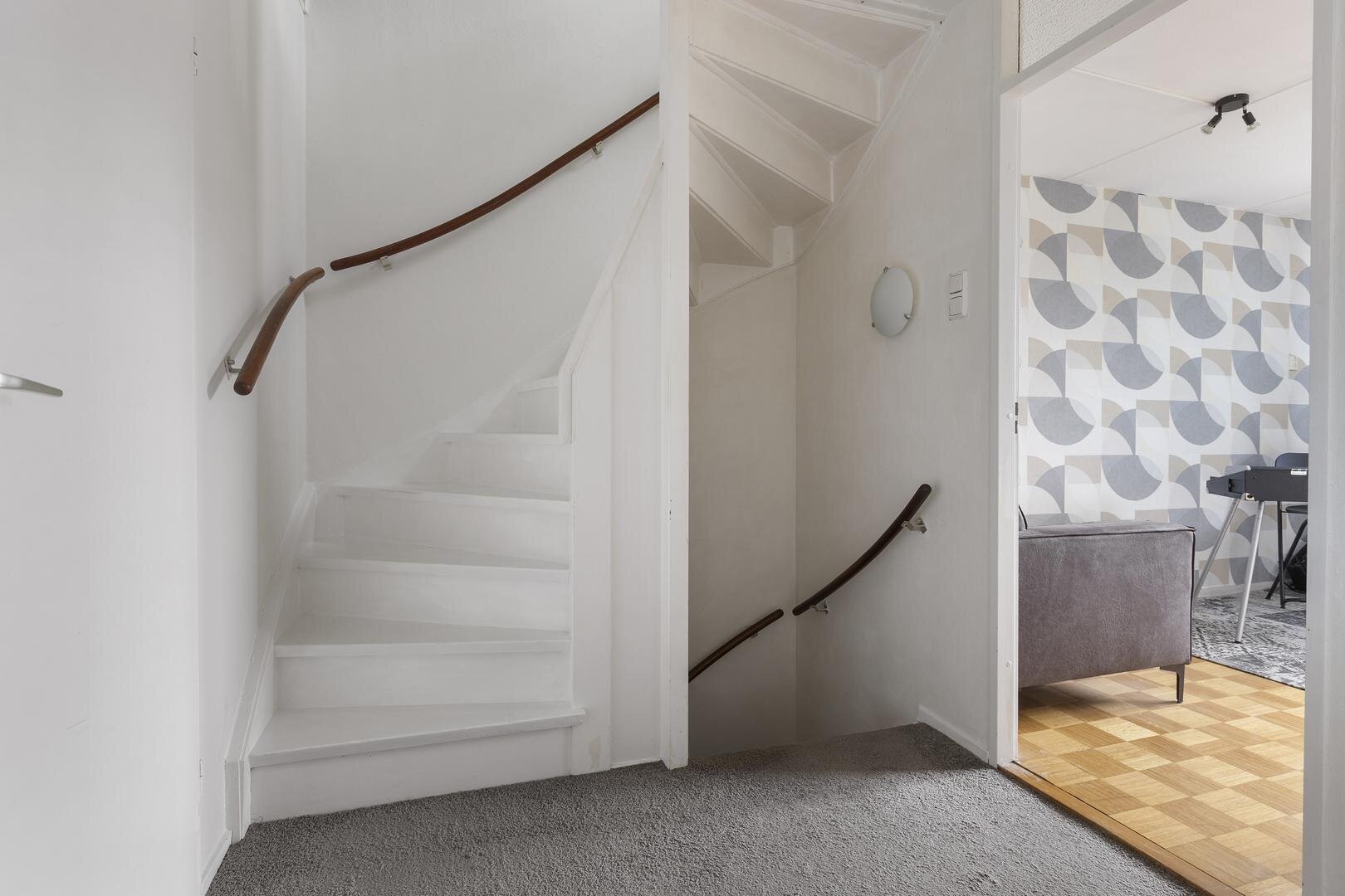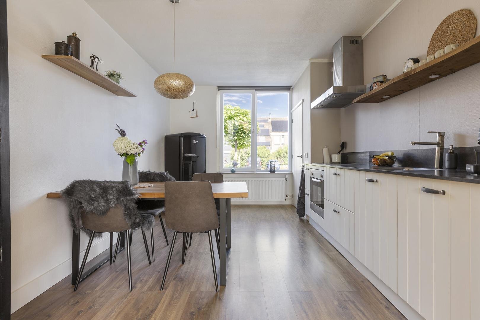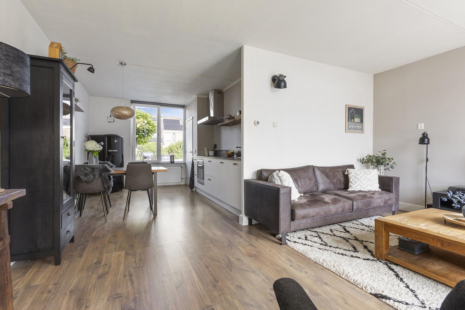 Begane grond: Entree/hal met toilet, meterkast en trapkast; (fietsen)berging met kleine bergzolder; L-vormige living met straatgerichte keuken v.v. inductiekookplaat, oven, afzuigkap en vaatwasser; tuingerichte woonkamer met openslaande deuren waardoor een fijne verbinding tussen binnen en buiten.