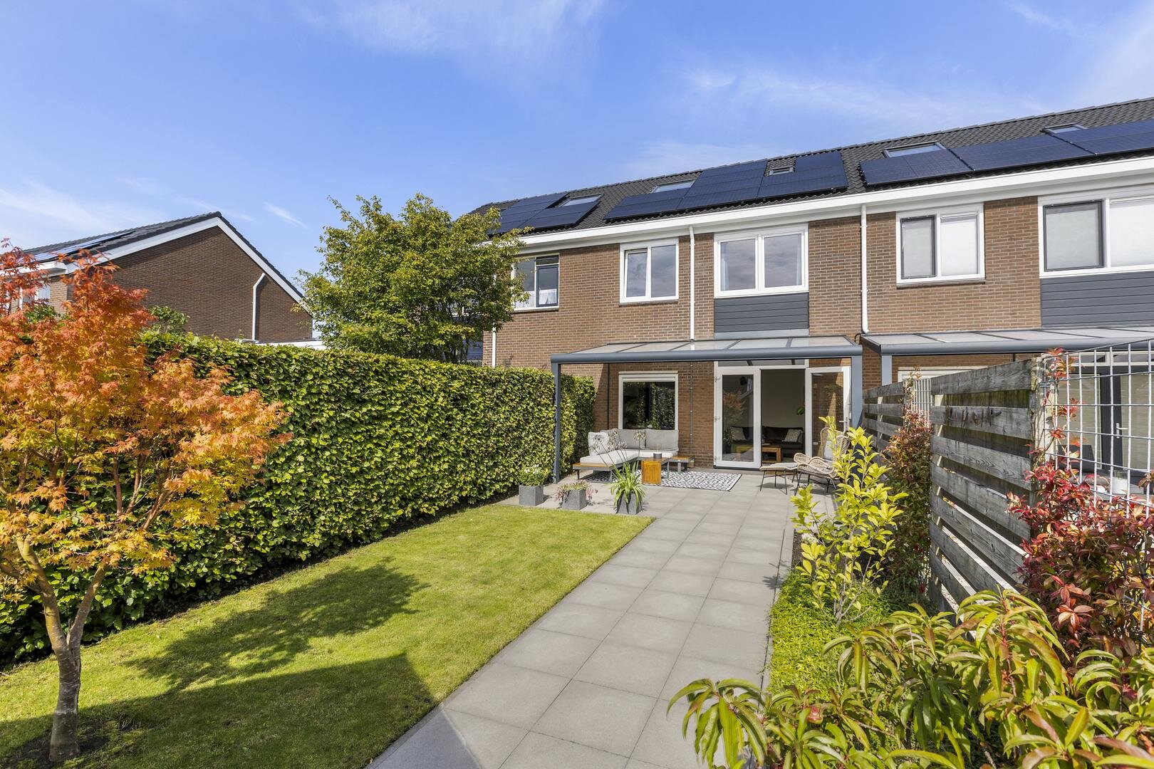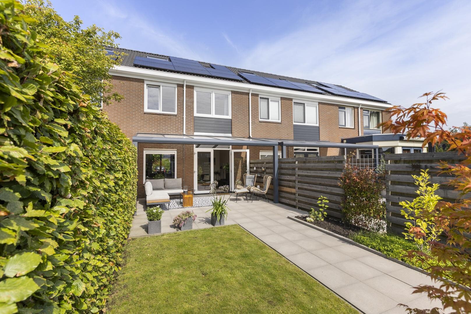 Keurig afgewerkte en onderhoudsarme tussenwoning met een moderne keuken, moderne badkamer en toilet, kunststof kozijnen en gevelbekleding, een heerlijk diepe tuin met terrasoverkapping en parkeergelegenheid op eigen terrein.
