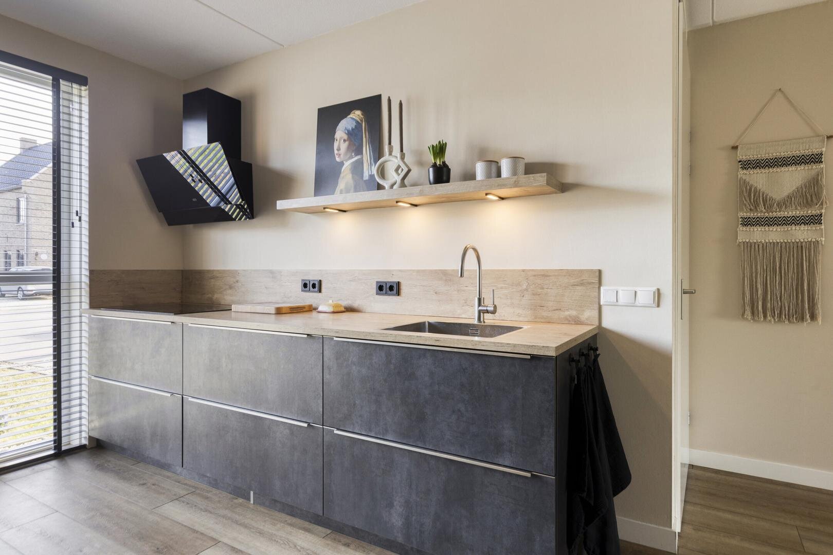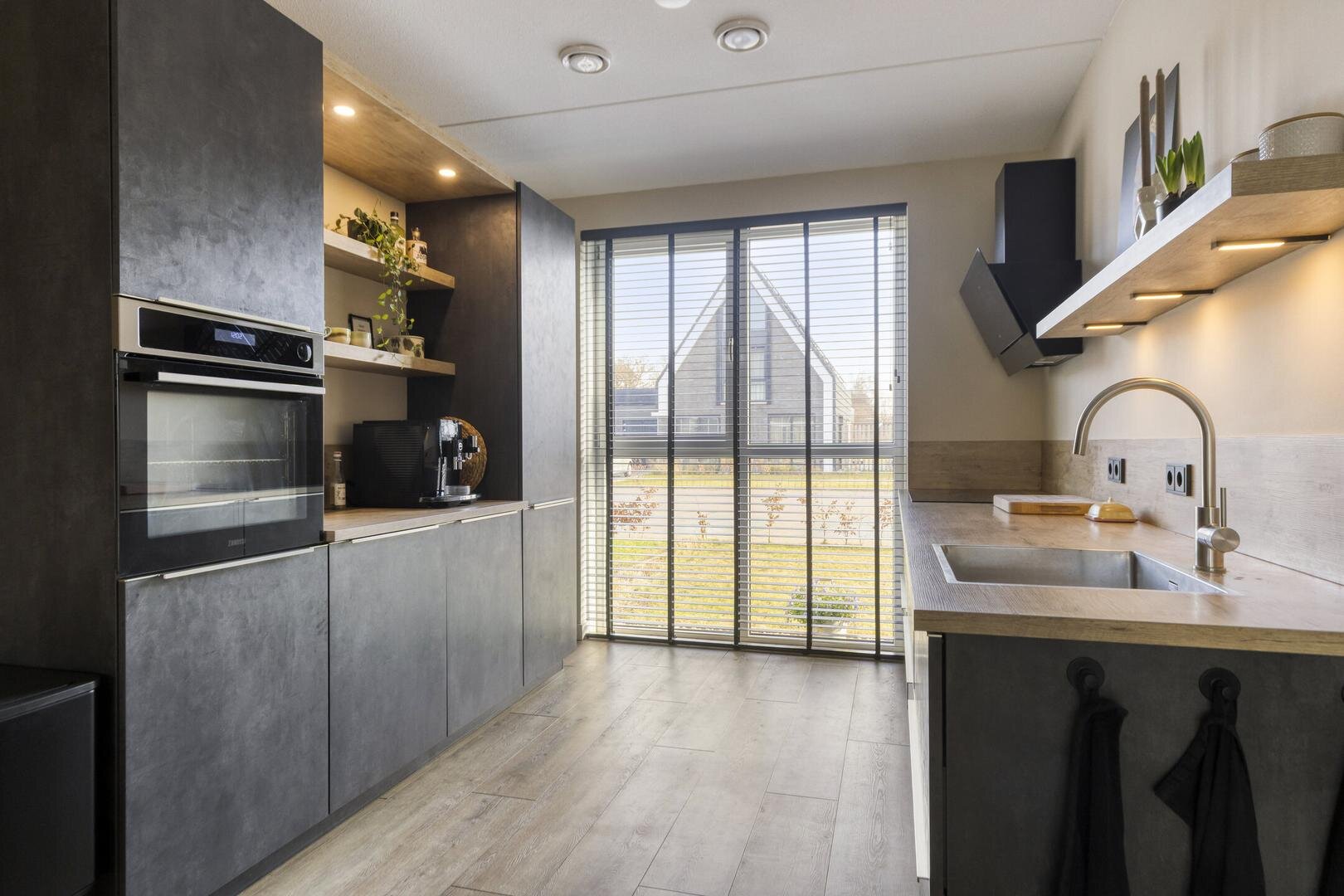 De living van circa 40 m² is een prettige leefruimte met voldoende plaats voor een comfortabele zithoek en een eethoek. De ruimte vormt het hart van de woning en staat in open verbinding met de keuken. De keurige keuken heeft een natuurstenen werkblad, biedt voldoende werk- en kastruimte en is voorzien van 5-pits gaskookplaat, afzuigkap, oven en koelkast. Vanuit de keuken geeft de schuifpui direct toegang tot de tuin.