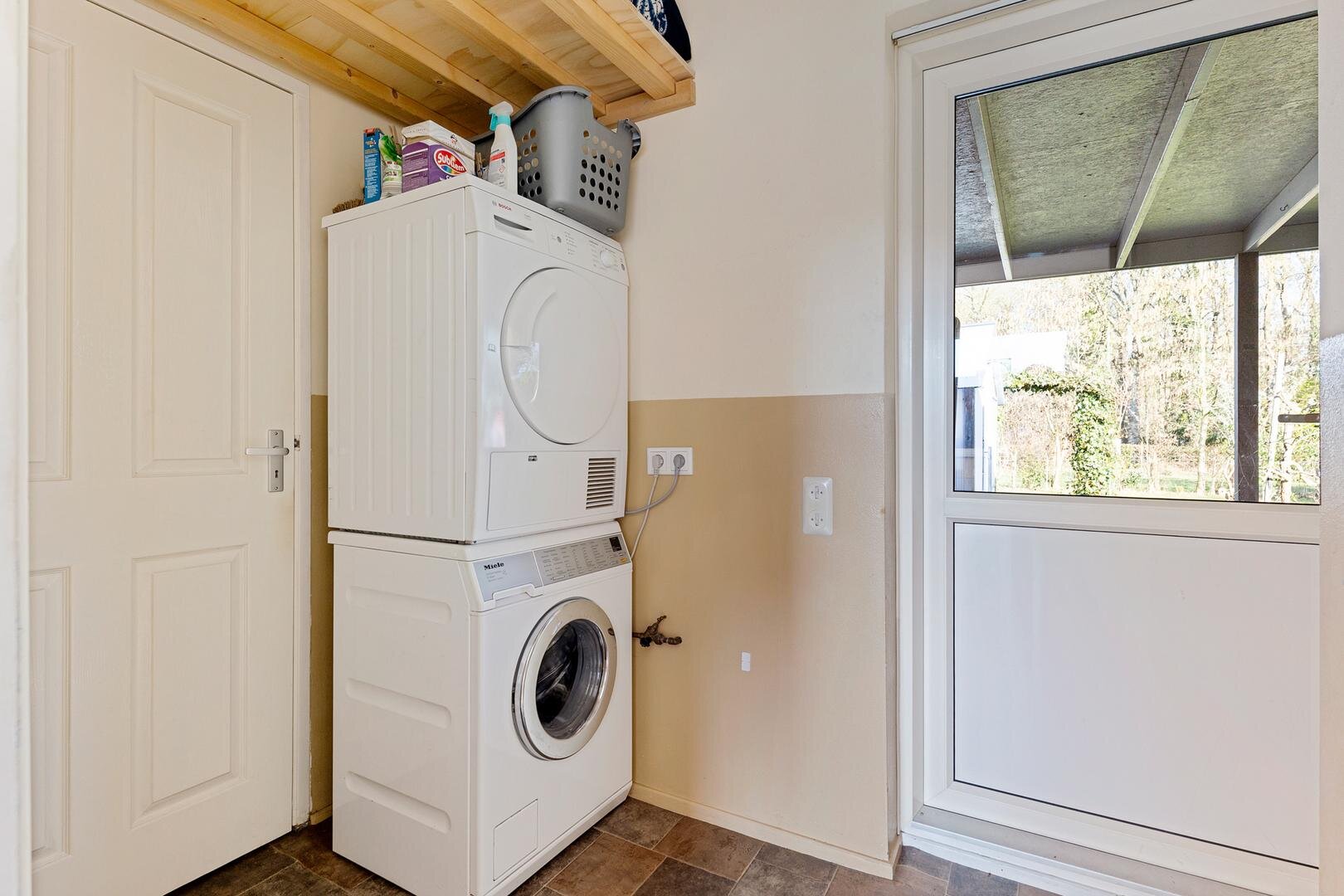 De bijkeuken (ca. 8 m²) biedt ruimte voor witgoed en extra bergruimte, ook is er vanuit hier toegang tot de badkamer (ca. 3,3 m²) welke compact maar functioneel ingericht.