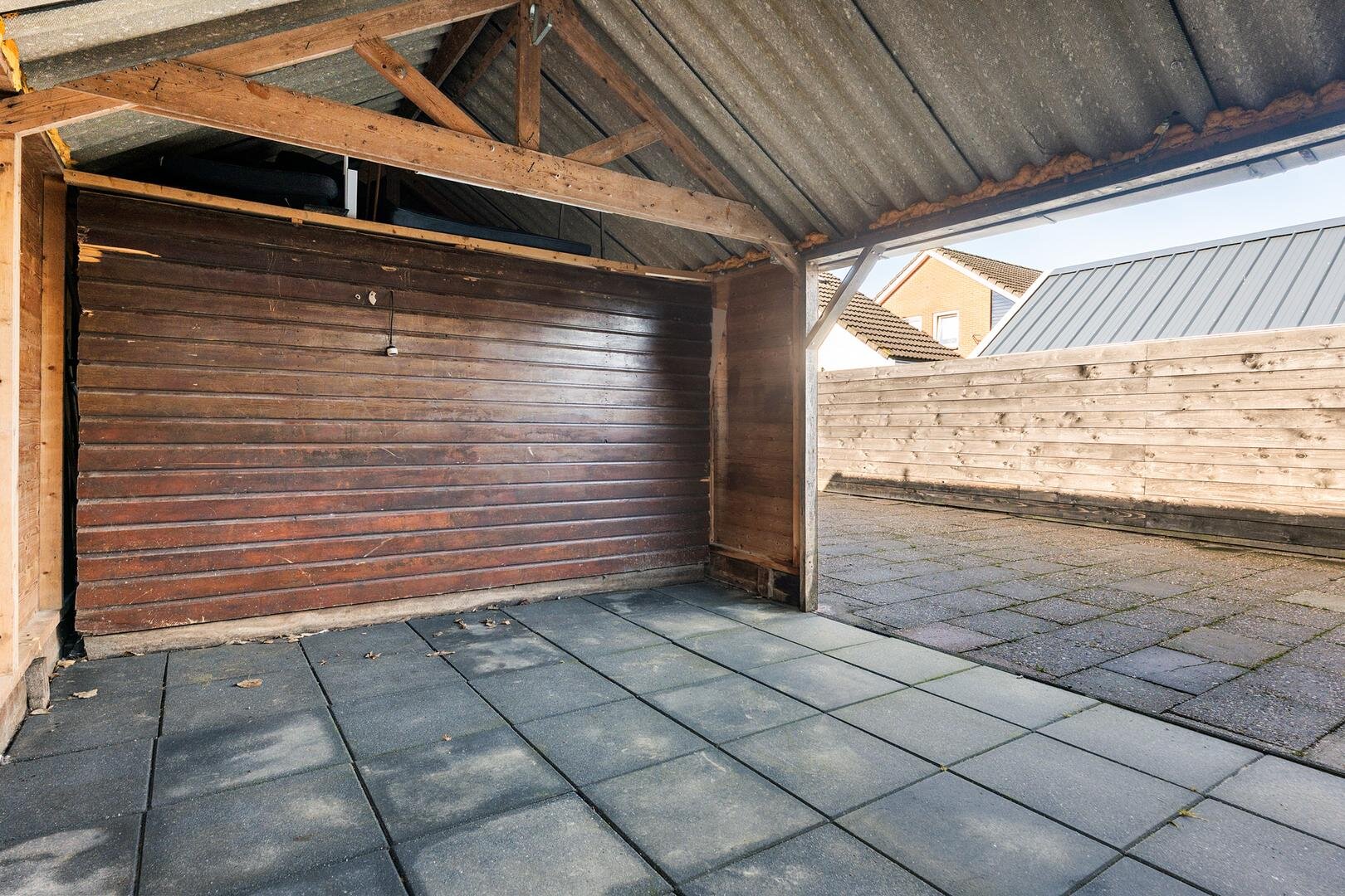 Aan de voorzijde bevindt zich de oprit met toegang tot de vrijstaande houten garage. De achtertuin is gelegen op het noordoosten en biedt voldoende ruimte om te genieten van het buitenleven. Via een achterom aan de Kerkstraat is de tuin tevens goed bereikbaar.