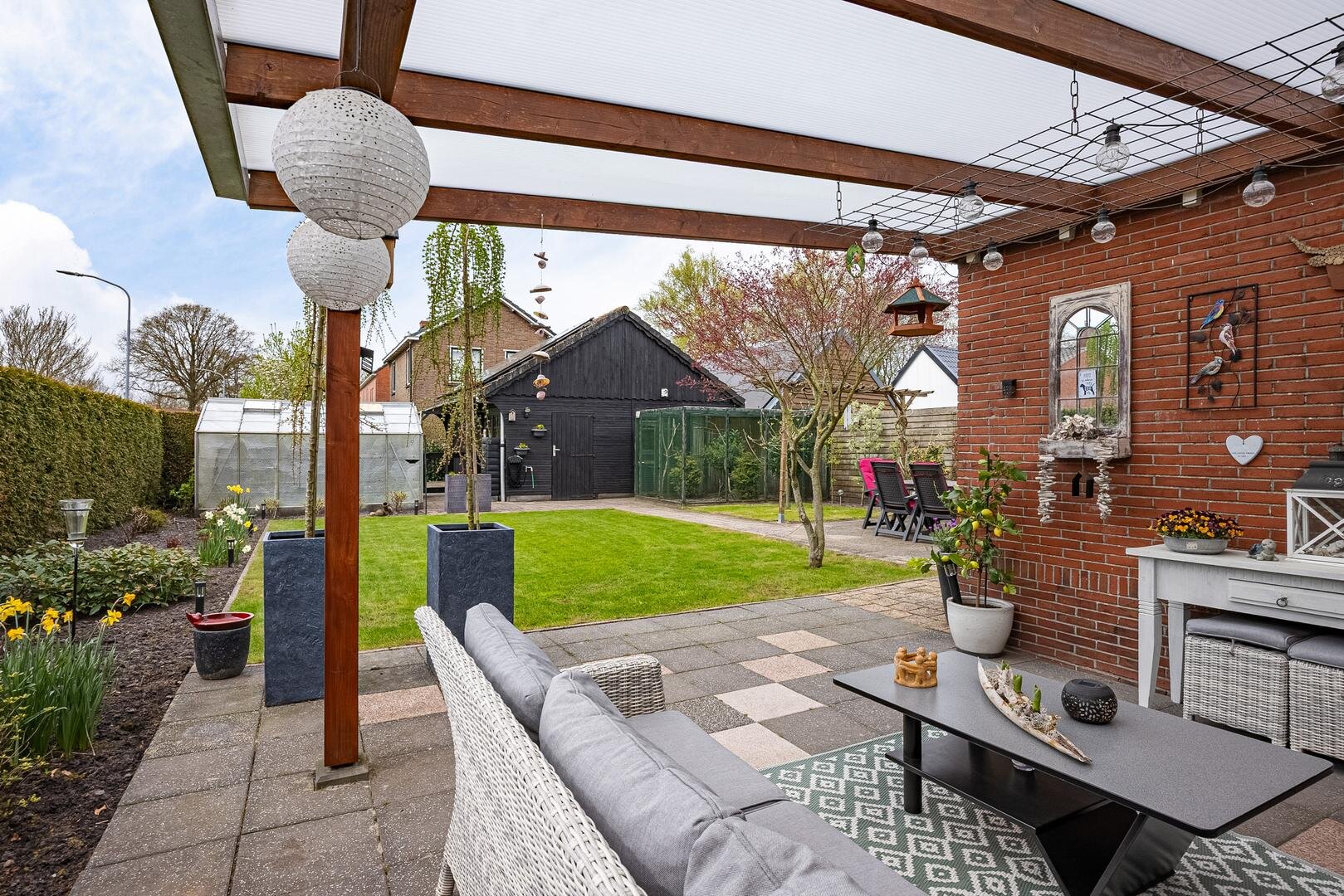 Buiten: De tuin rondom de woning is verzorgd aangelegd en biedt meerdere plekken om te zitten en te genieten van de rust en privacy. De hoekligging zorgt voor een extra ruimtelijk gevoel en veel vrijheid.