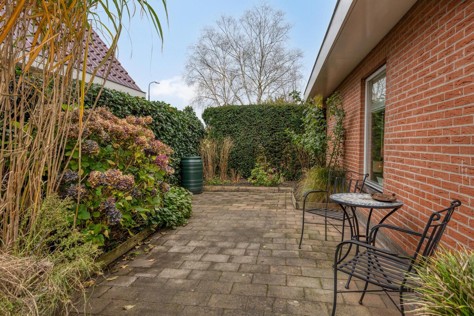 Rondom de woning ligt de in 2024 volledig opnieuw ingerichte tuin. Hier is met zorg een sfeervolle buitenruimte gecreëerd met meerdere zitplekken, prachtige beplanting en uitzicht over het water. Achter in de tuin bevindt zich een nieuw tuinhuis van circa 24 m², eveneens gerealiseerd in 2024 – ideaal als berging, werkruimte of atelier. Dankzij de ligging aan het water is dit een heerlijke plek om te ontspannen en te genieten van rust en privacy.