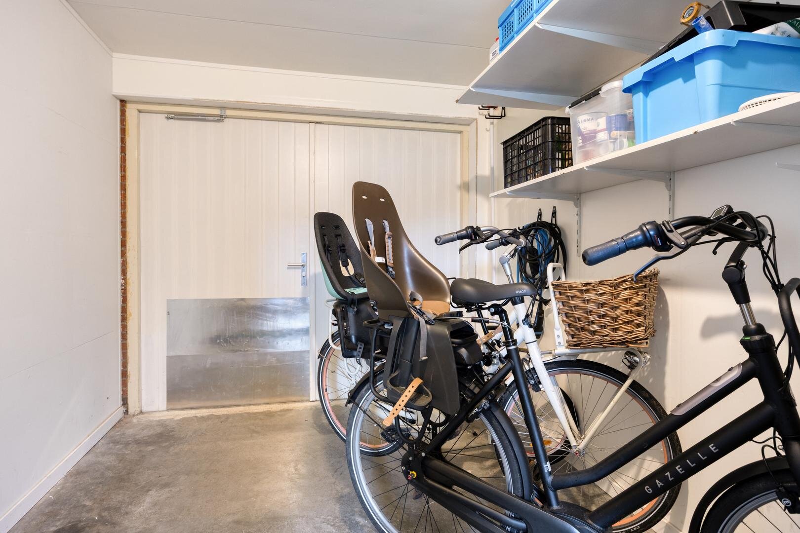 Aansluitend bevindt zich de bijkeuken van 11 m². Deze is volledig geïsoleerd, voorzien van vloerverwarming en biedt plaats aan het witgoed en extra bergruimte. Vanuit de bijkeuken is zowel de tuin als de geïsoleerde inpandige berging van ca. 8 m² bereikbaar – ideaal voor het stallen van fietsen.