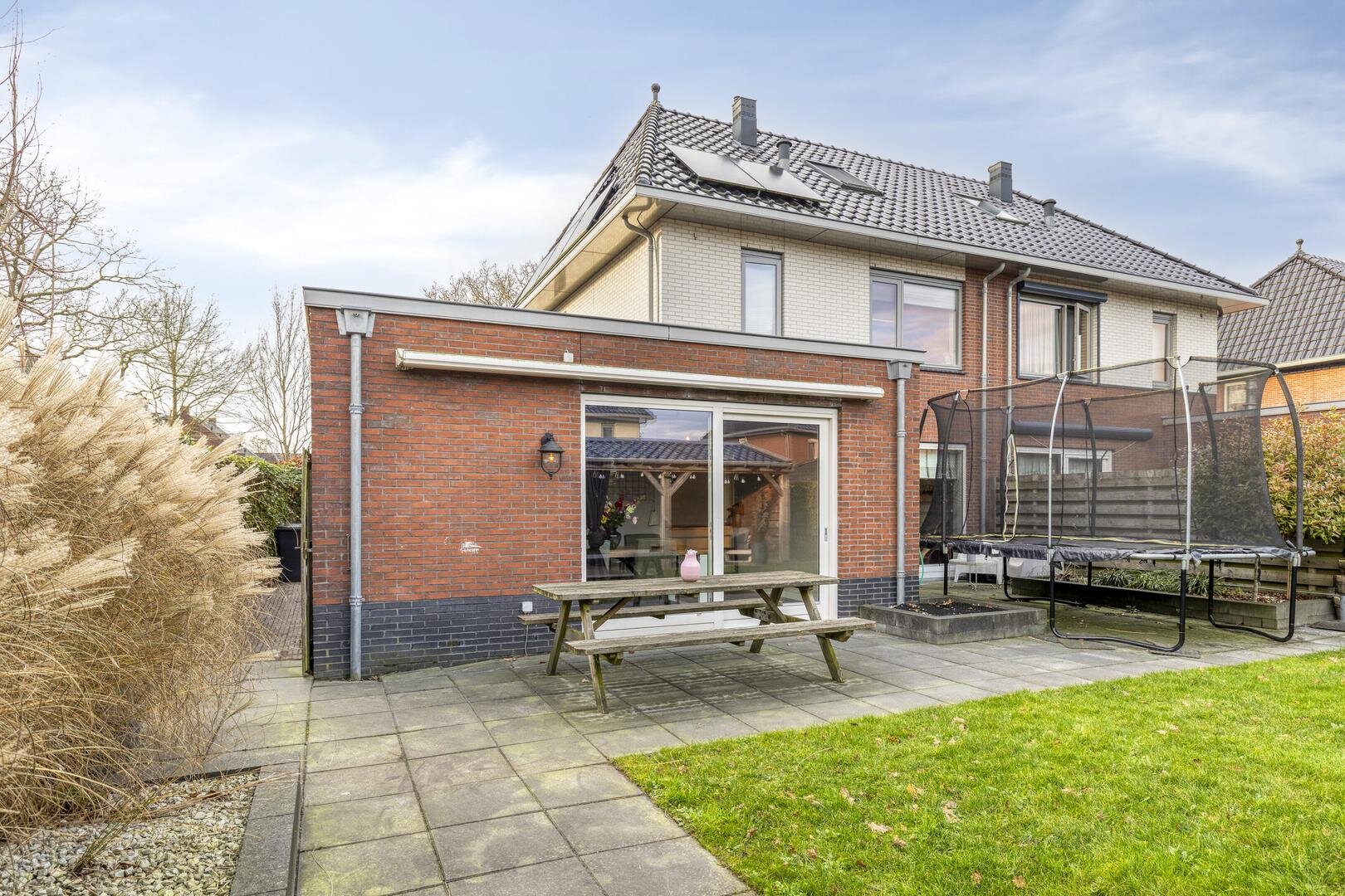 De verzorgde achtertuin is bereikbaar middels een achterom langs de woning en beschikt over een fraaie houten berging van circa 17 m² met een aangebouwde terrasoverkapping (ca. 6 x 4 m) voorzien van elektra. Een heerlijke plek om van de vroege lente tot late herfst comfortabel buiten te zitten. Altijd een prettige plek dus voor ontspanning en/of gezelligheid!