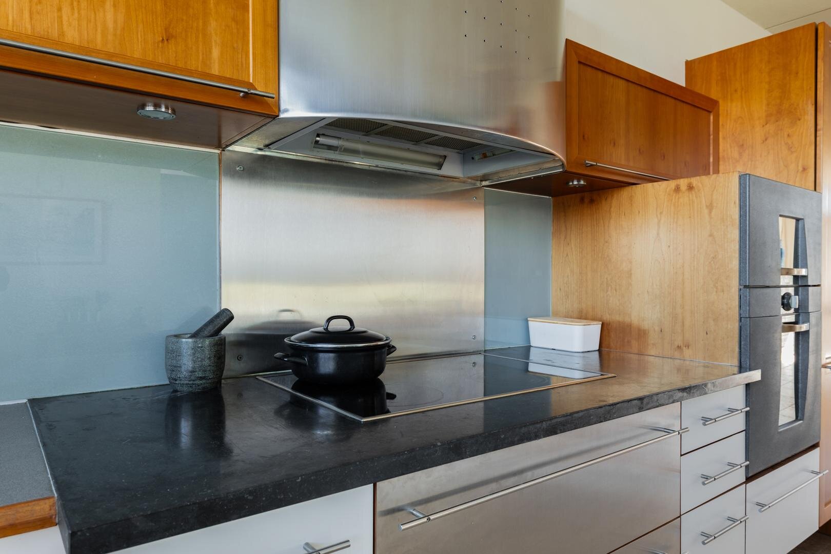 De exclusieve keuken (Boform) is uitgevoerd in maatwerk en voorzien van diverse inbouwapparatuur, waaronder een oven, stoomoven, koffiemachine en vaatwasser. Een stijlvolle en complete keuken waar koken en samenzijn vanzelf samenkomen.