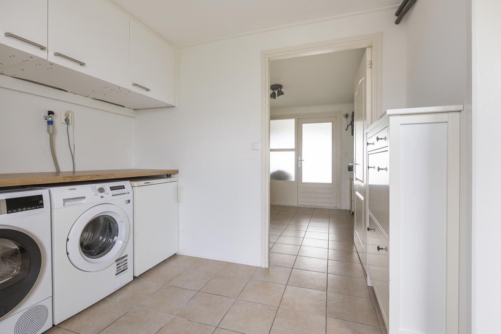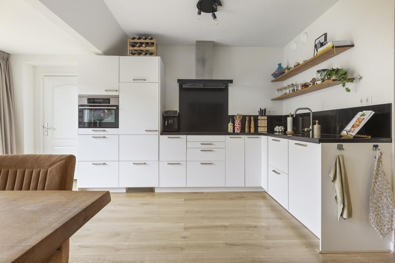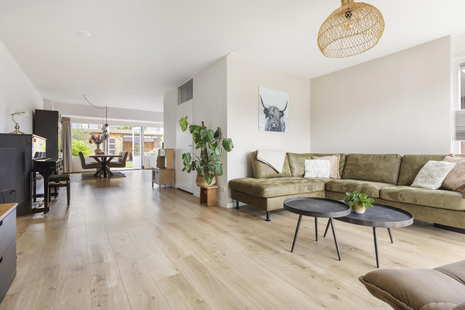 Begane grond: entree/hal, moderne toiletruimte (2021), royale en lichte woonkamer met aansluitend een eetkamer (totaal ca. 46 m²), open keuken van ca. 7 m² met een moderne keukenopstelling uit 2021 en voorzien van inductiekookplaat, afzuigkap, combi-oven, koelkast en vaatwasser. Vanuit de keuken kom je in de bijkeuken van ca. 7 m² met witgoedaansluiting en deur naar zowel de achtertuin als de berging van ca. 10 m² met toegang naar de oprit.