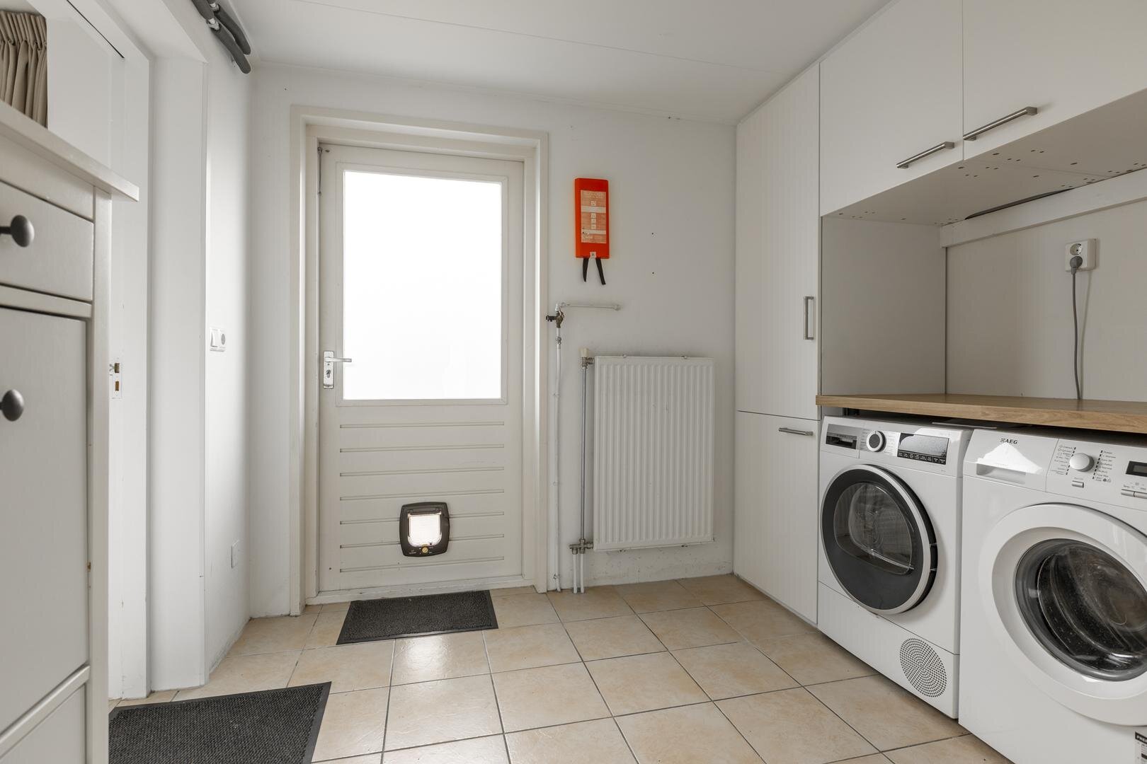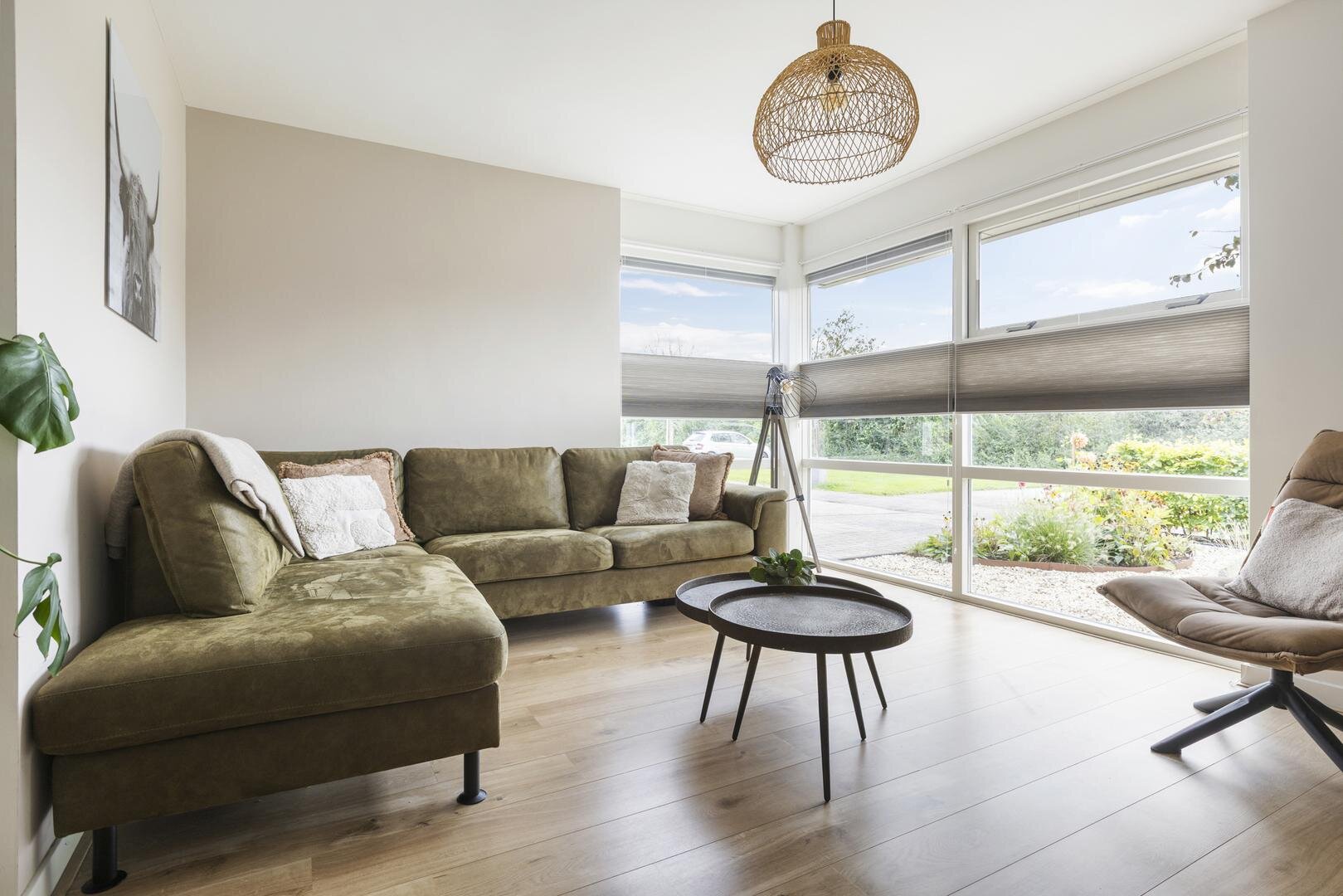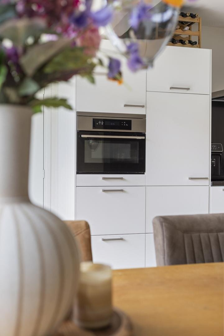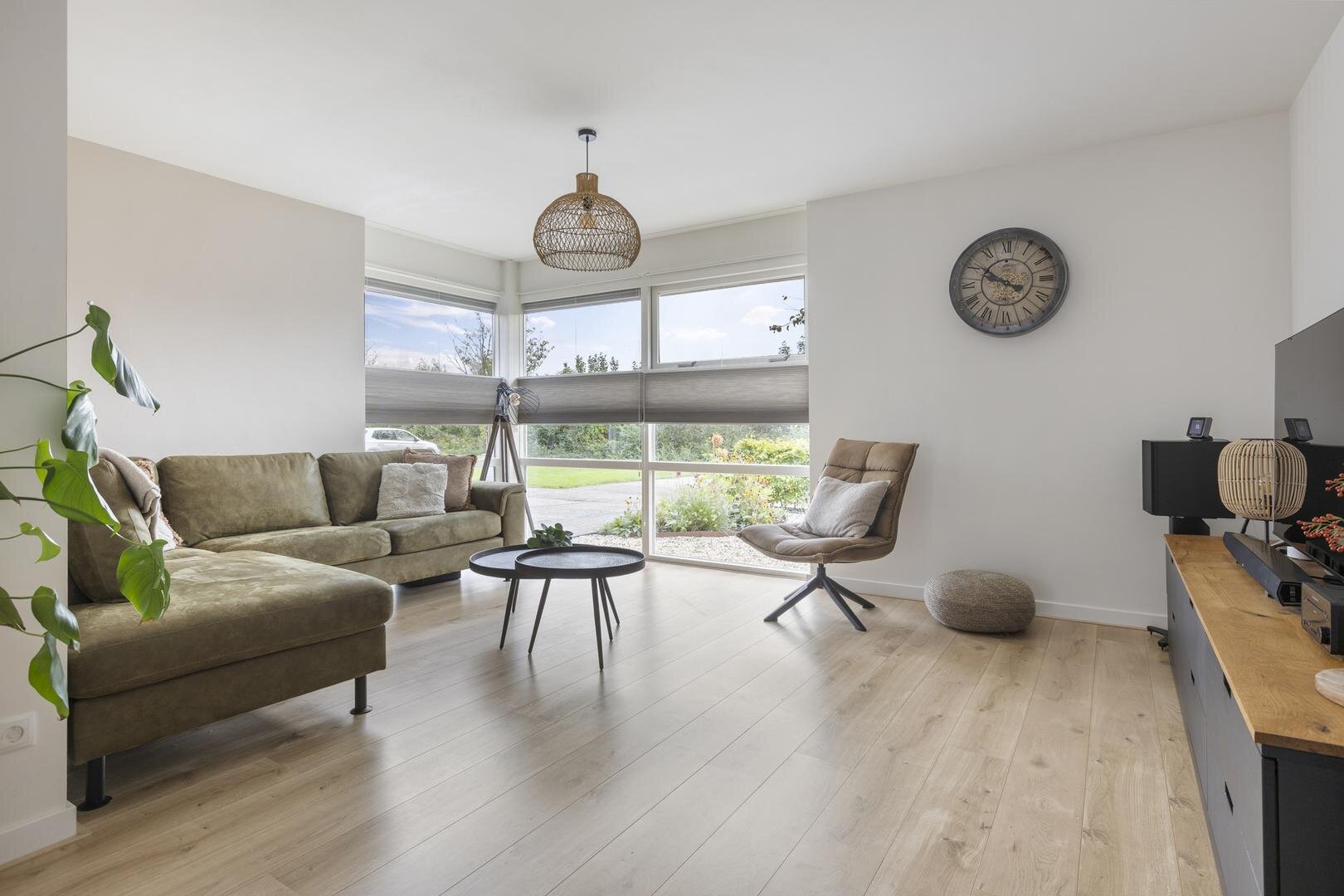 Begane grond: entree/hal, moderne toiletruimte (2021), royale en lichte woonkamer met aansluitend een eetkamer (totaal ca. 46 m²), open keuken van ca. 7 m² met een moderne keukenopstelling uit 2021 en voorzien van inductiekookplaat, afzuigkap, combi-oven, koelkast en vaatwasser. Vanuit de keuken kom je in de bijkeuken van ca. 7 m² met witgoedaansluiting en deur naar zowel de achtertuin als de berging van ca. 10 m² met toegang naar de oprit.