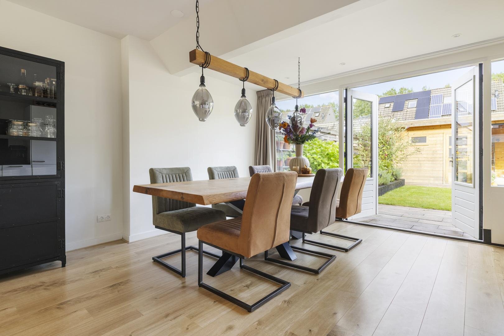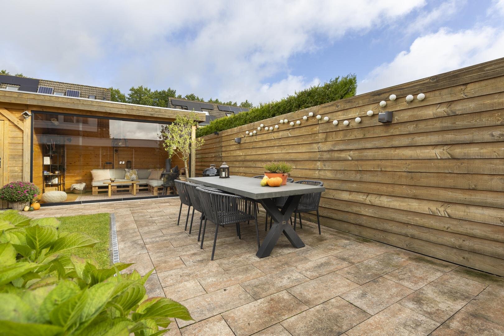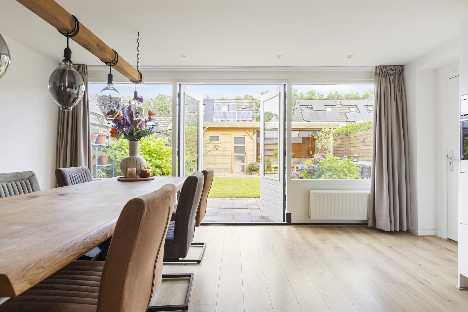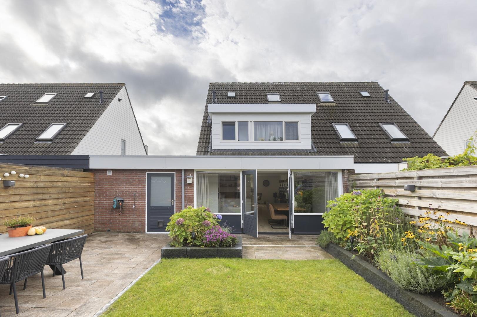 Ruime en moderne geschakelde 2-onder-1-kapwoning met vier slaapkamers, bijkeuken en berging. Aan de achterzijde is de woning uitgebouwd, waardoor er extra leefruimte is op de begane grond. De mooie raampartijen zorgen voor extra licht en zicht op de achtertuin. Deze is zeer netjes aangelegd en hier kun je gedurende de dag zowel van de zon als de schaduw genieten. Achterin de tuin staat een geweldig houten tuinhuis, waar je elk seizoen heerlijk kunt genieten van de tuin. De woning is volledig geïsoleerd, voorzien van HR++ glas en 10 zonnepanelen. Kortom: de ideale gezinswoning waar je zo in kunt!