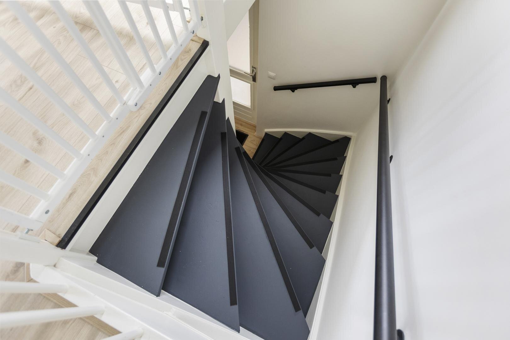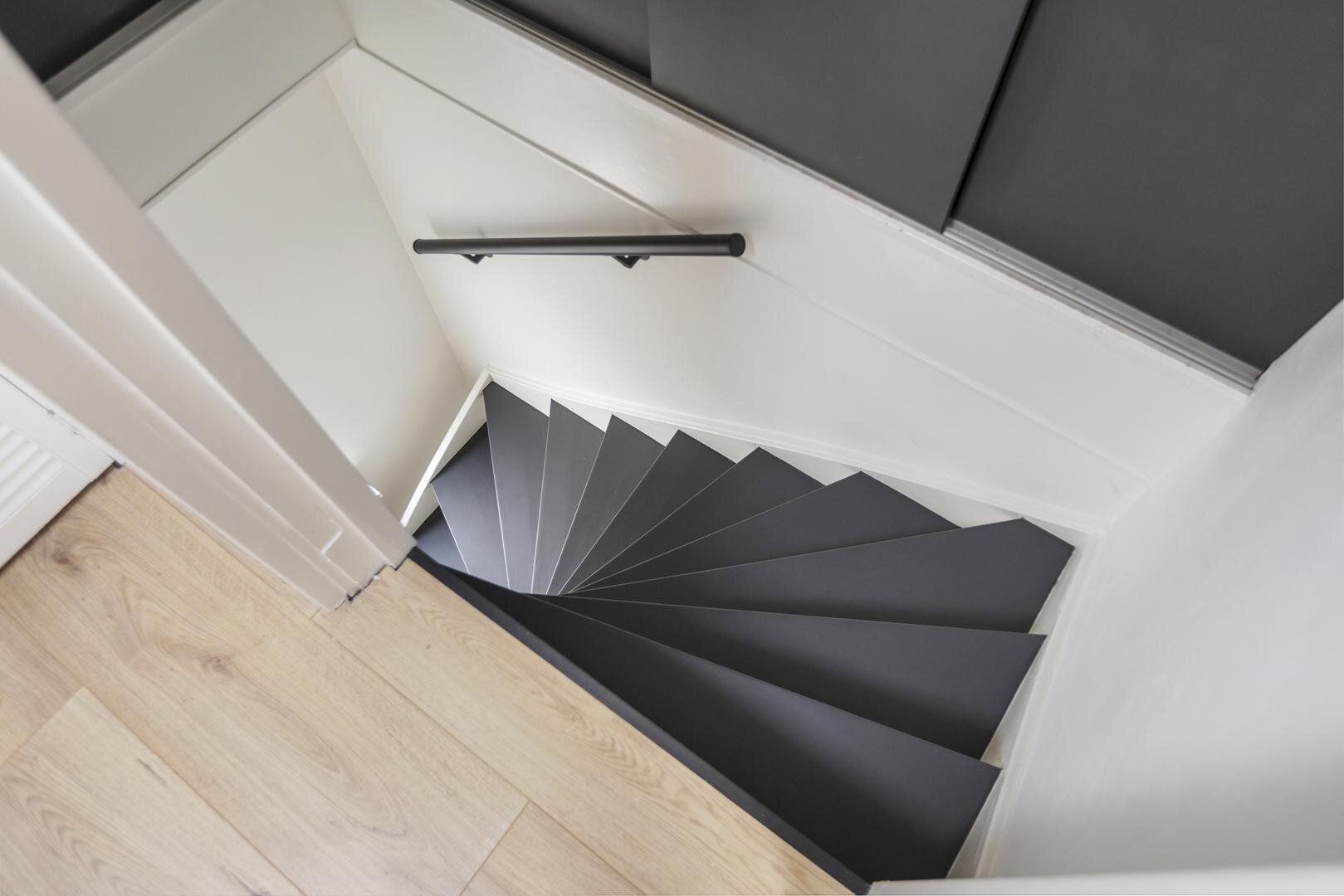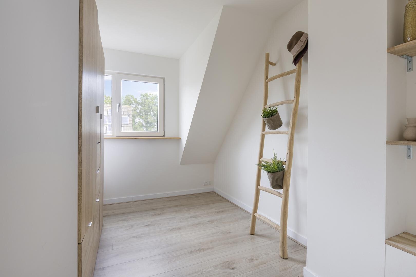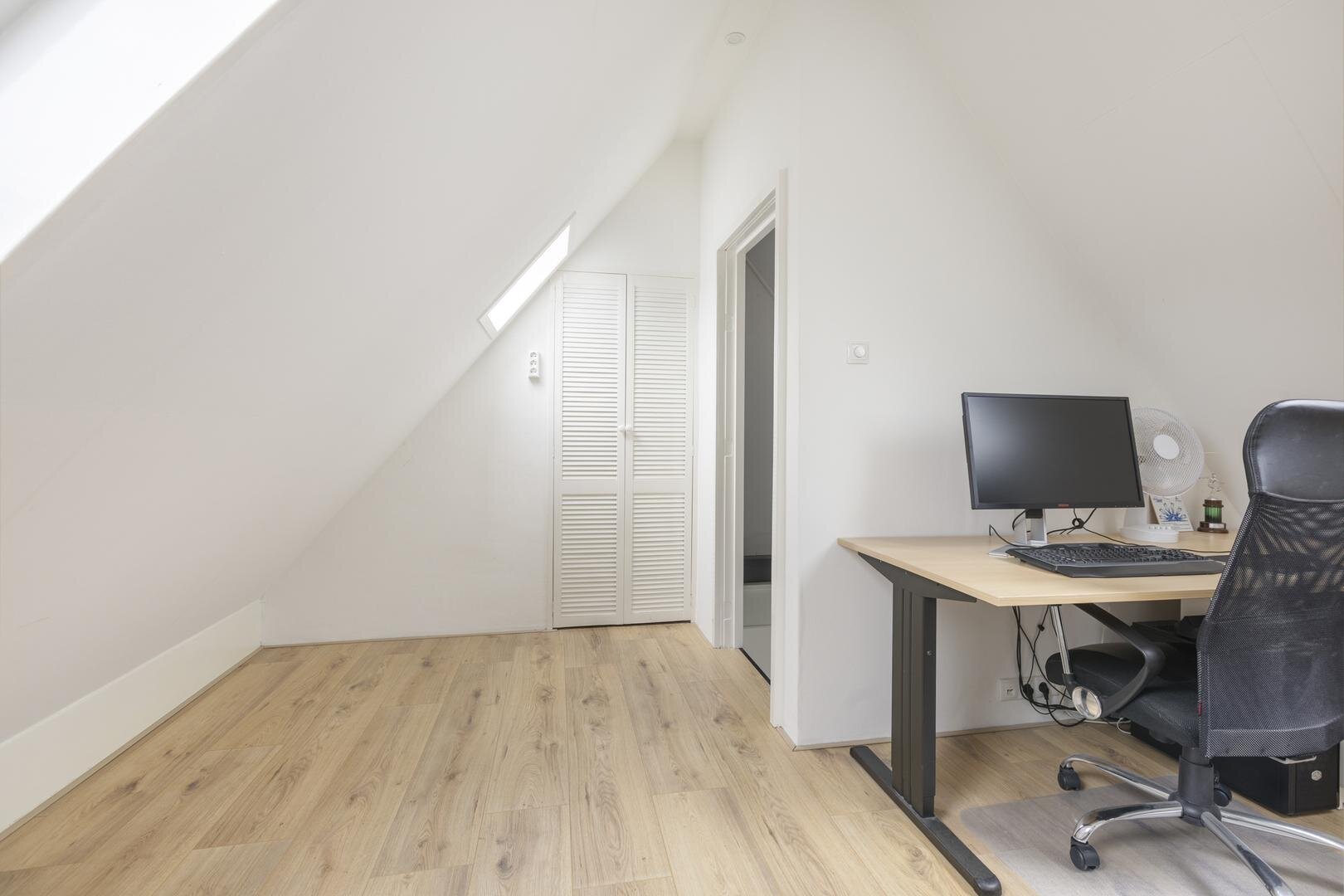Tweede verdieping: overloop met bergruimte en cv-opstelling en toegang tot de vierde slaapkamer van ca. 12 m² met drie dakramen.