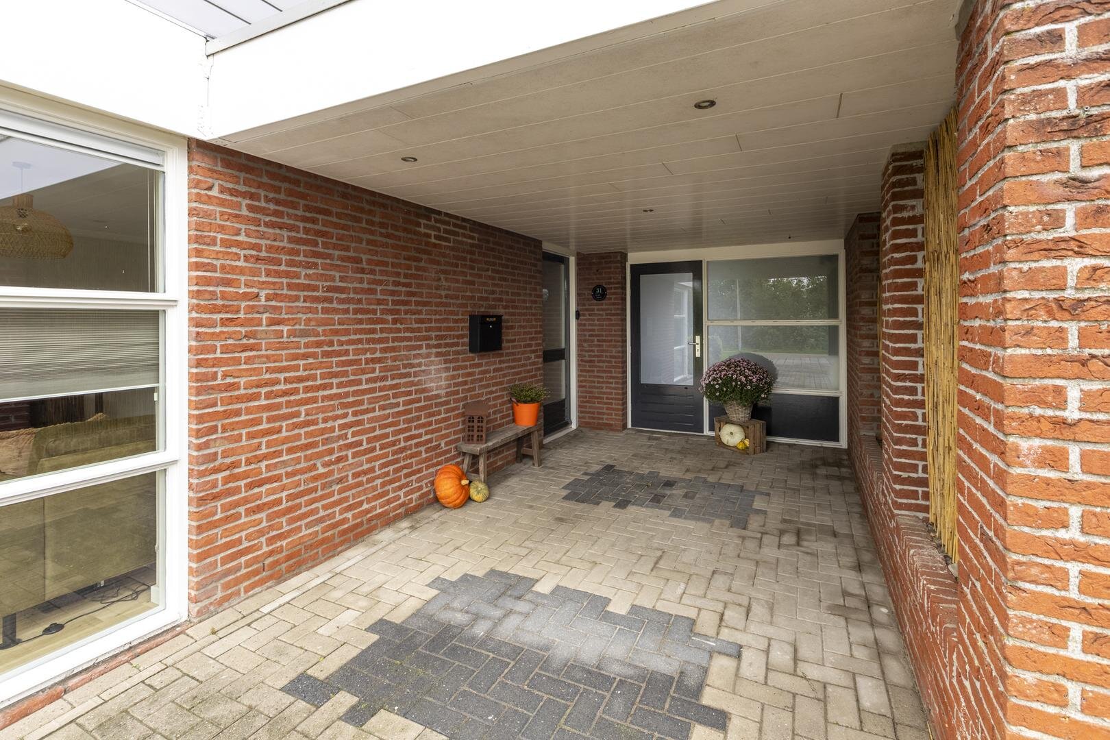 De ruime oprit aan de voorzijde heeft plaats voor twee auto's en er is een carport aanwezig.