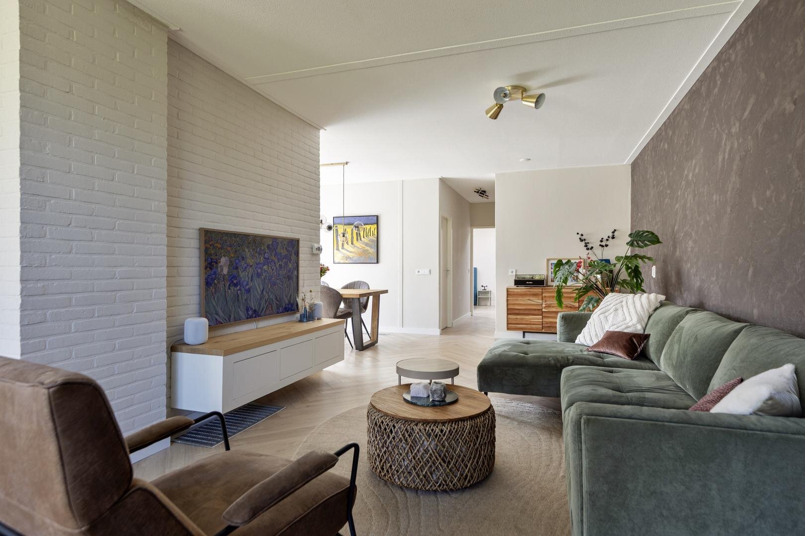 De woonkamer is bereikbaar vanuit de hal en vormt het centrale punt van de woning. De ruimte is ruim opgezet en beschikt over een mooie raampartij met zicht op de tuin, wat zorgt voor een prettige verbinding met buiten. De woonkamer is praktisch in te delen met een zit- en eetgedeelte en is voorzien van een visgraatvloer. De keuken (2015) sluit hierop aan en is voorzien van een vaatwasser, combi-oven, inductiekookplaat en afzuigkap. Vanuit de keuken is de bijkeuken bereikbaar.