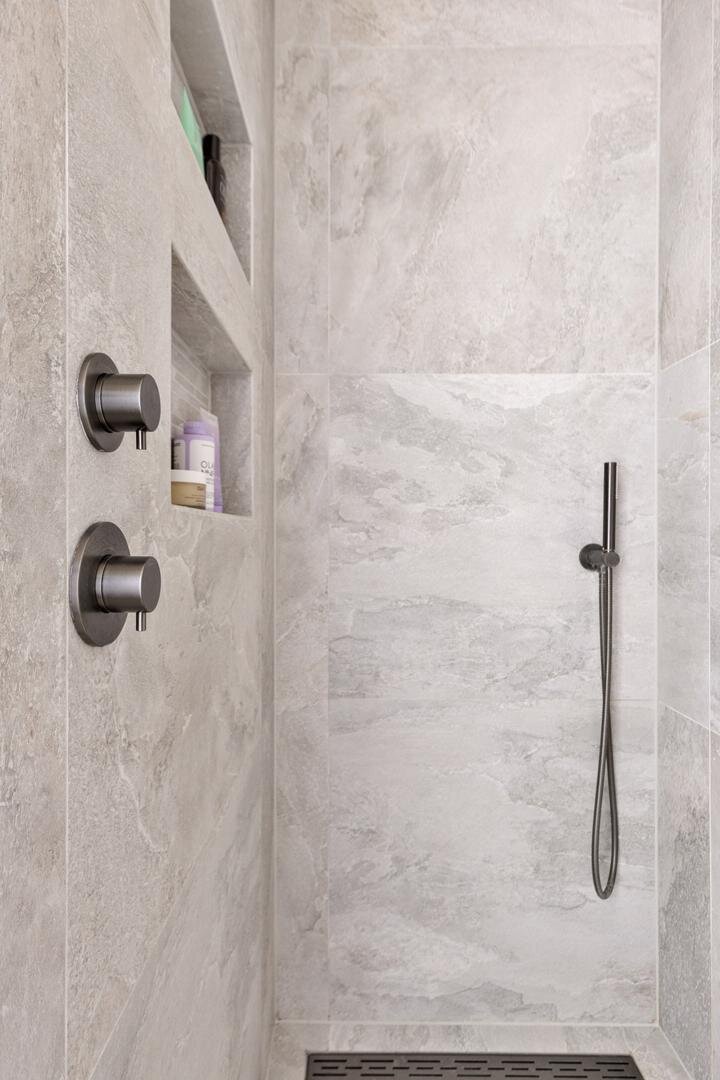 Aan de achterzijde van de woning bevinden zich de overige vertrekken. Hier vind je een slaapkamer van circa 9 m² en een tweede slaapkamer van circa 18 m². De badkamer is circa 1 jaar geleden vernieuwd, modern uitgevoerd en voorzien van een regendouche met handdouche, een wastafel, toilet en mechanische ventilatie.