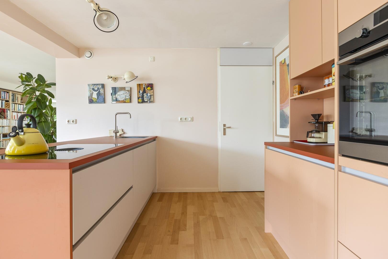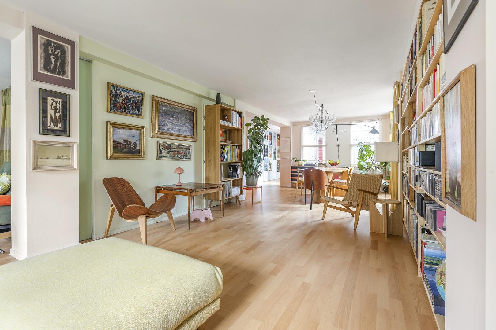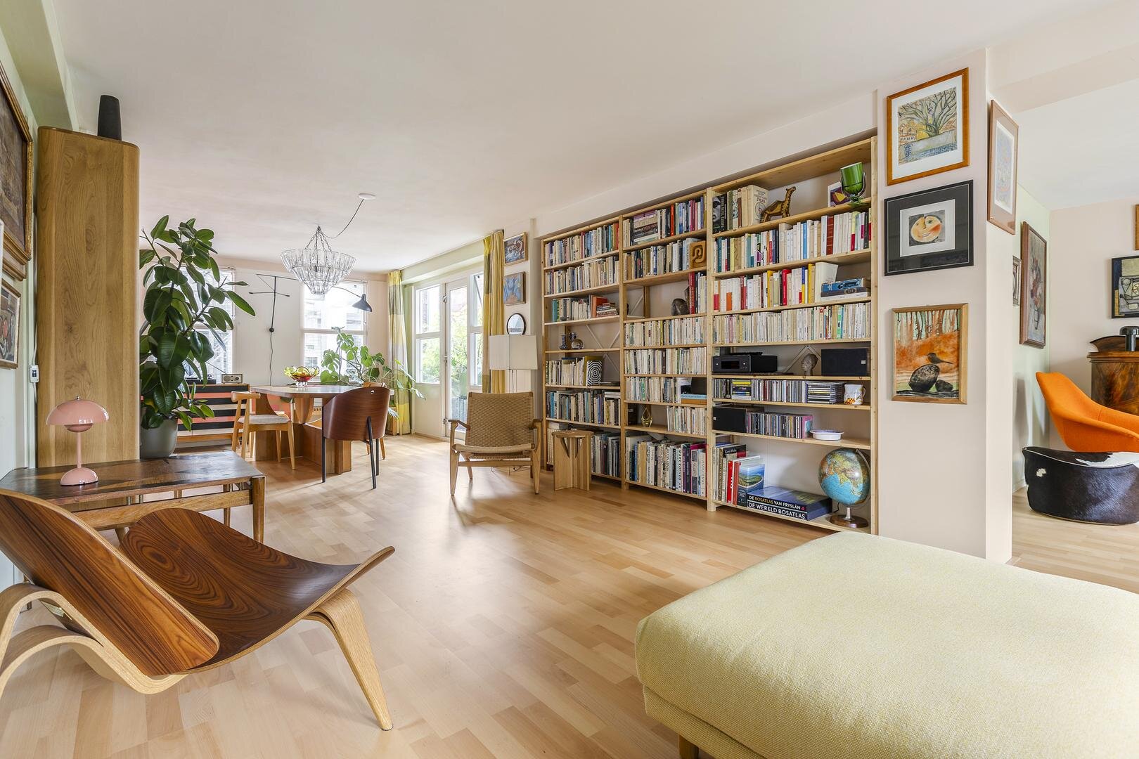 Eerste woonlaag: entree appartement met aansluitend bergruimte, ruime en sfeervolle woonkamer van ca. 31 m² met een open keuken die is voorzien van een luxe keukenopstelling (2024) met een inductiekookplaat met afzuigsysteem, oven, koel-vriescombinatie en vaatwasser. Vanuit de woonkamer loop je zo het ruime balkon op van ca. 11 m². De multifunctionele ruime van ca. 11 m² geeft eveneens toegang tot de slaapkamer van ca. 10 m² met zicht op het balkon. De andere slaapkamer is ca. 11 m² met zicht op de straat. De moderne badkamer van ca. 6 m² heeft een ligbad/douche, wastafelmeubel, wasmachineaansluiting en een apart hoekje met het toilet.