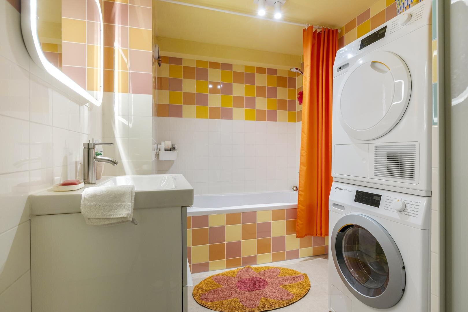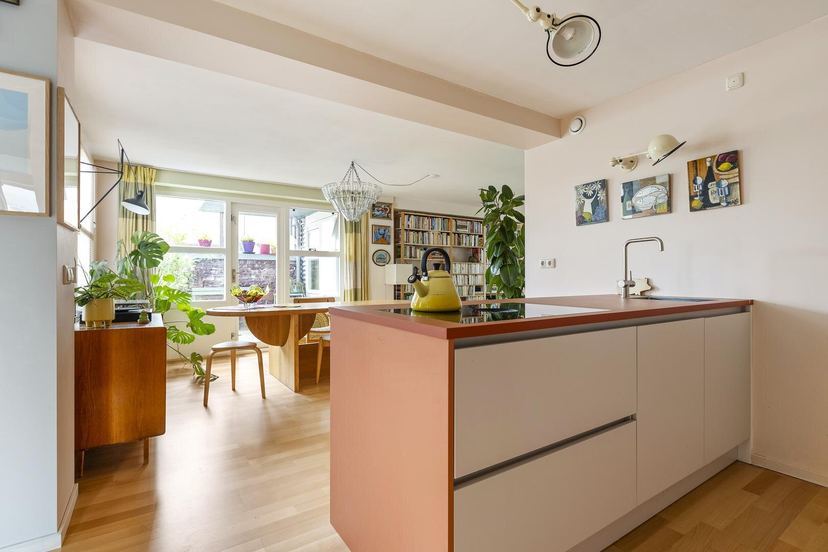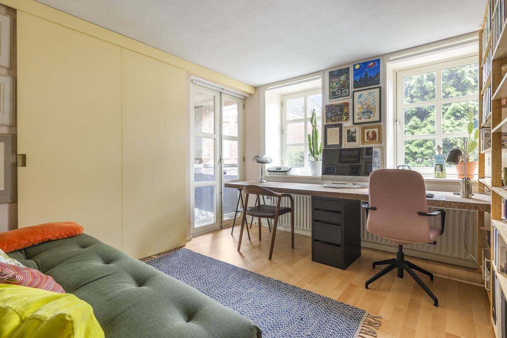 Eerste woonlaag: entree appartement met aansluitend bergruimte, ruime en sfeervolle woonkamer van ca. 31 m² met een open keuken die is voorzien van een luxe keukenopstelling (2024) met een inductiekookplaat met afzuigsysteem, oven, koel-vriescombinatie en vaatwasser. Vanuit de woonkamer loop je zo het ruime balkon op van ca. 11 m². De multifunctionele ruime van ca. 11 m² geeft eveneens toegang tot de slaapkamer van ca. 10 m² met zicht op het balkon. De andere slaapkamer is ca. 11 m² met zicht op de straat. De moderne badkamer van ca. 6 m² heeft een ligbad/douche, wastafelmeubel, wasmachineaansluiting en een apart hoekje met het toilet.